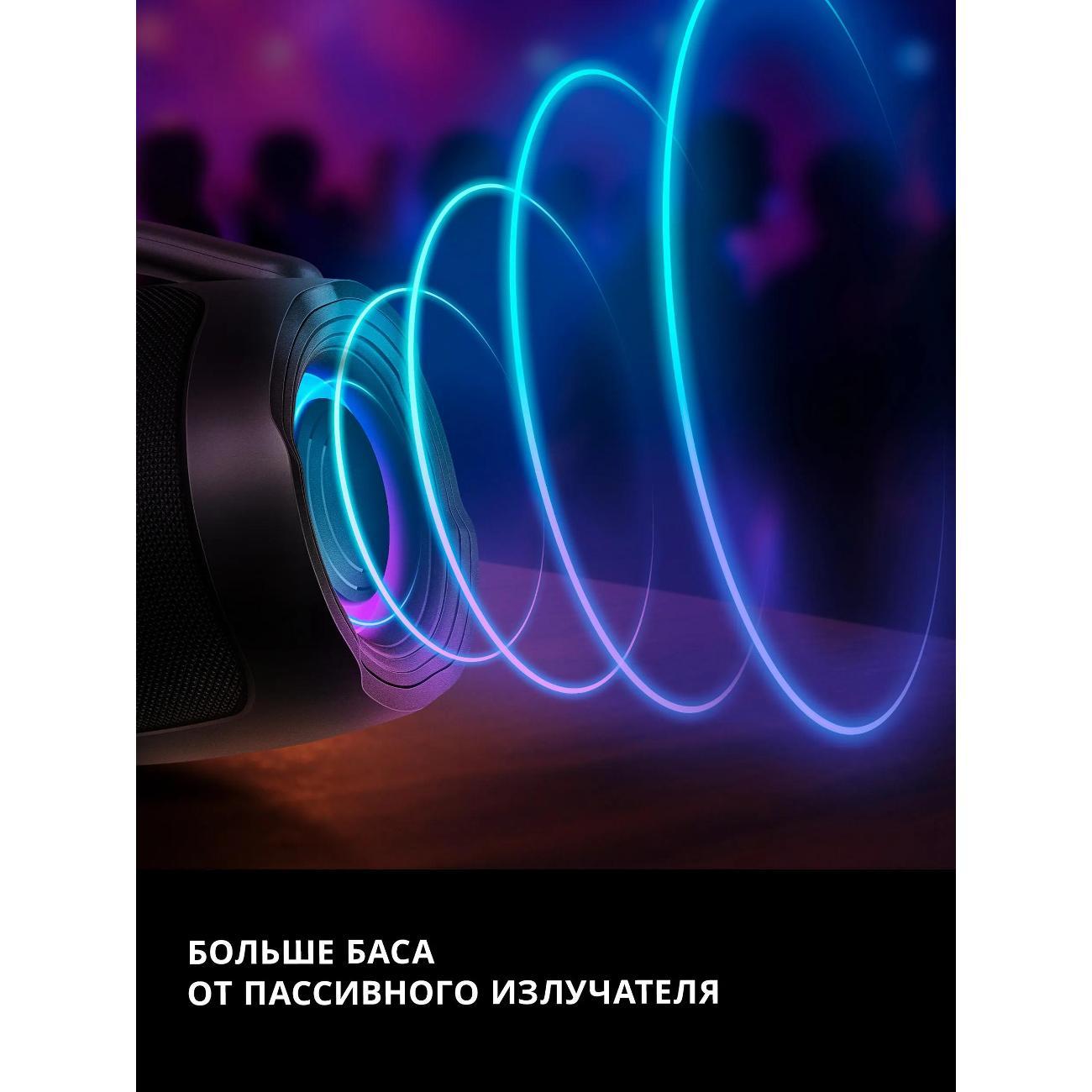 Портативная акусика PS-375 — это современная музыкальная система, созданная для любителей качественного звука и активного образа жизни. Благодаря удобной ручке для переноски, ее легко брать с собой на пикник, в поездку или на вечеринку. Колонка поддерживает беспроводное подключение через bluetooth, обеспечивая стабильную передачу сигнала на расстоянии. Акустическая система оснащена выходной мощностью 60 Вт, что позволяет наслаждаться чистым и насыщенным звучанием. Благодаря двухполосной системе воспроизведения достигается отличная детализация всех частот, а пассивный излучатель и функция Bass Boost создают глубокий и мощный бас.