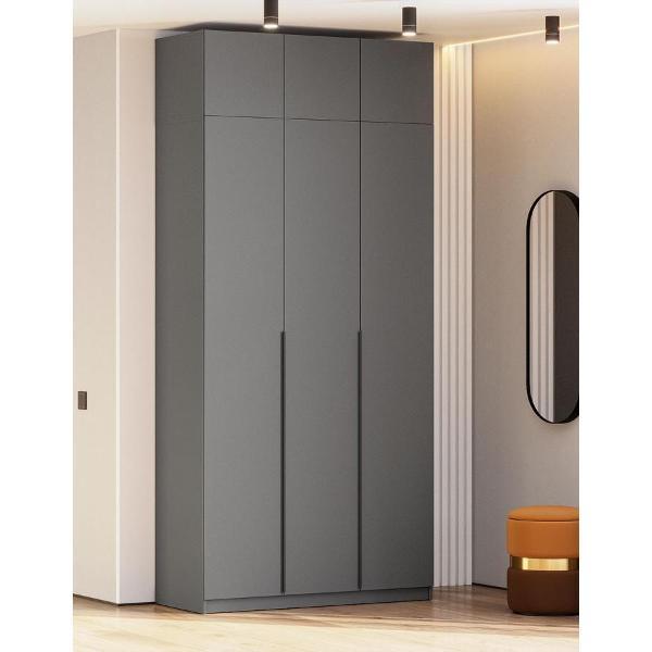 Антресоль Сеул 3 секции расширит систему хранения, дополнив шкаф из одноименной серии. За распашными дверцами можно расположить коробки, аксессуары и головные уборы. Гладкие матовые фасады не создают проблем в уходе.