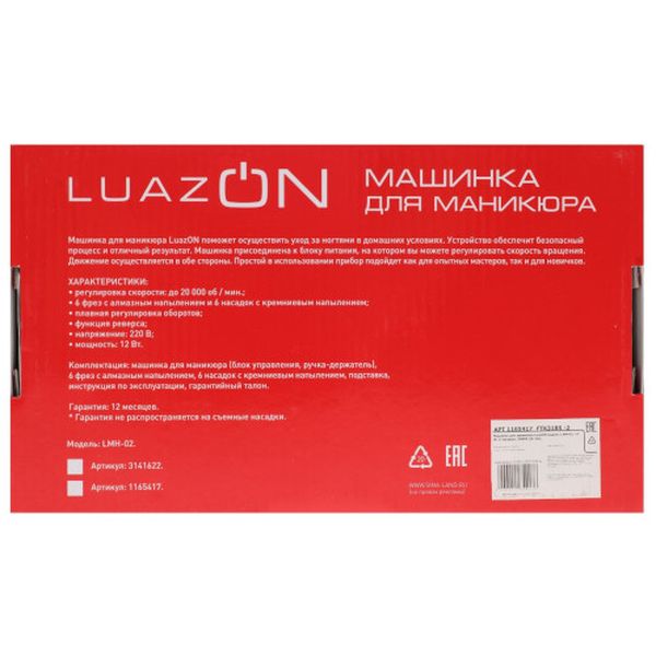Вы можете купить Аппарат для маникюра Luazon 1165417 LMH-02 10-12 Вт, 6 насадок в магазинах М.Видео по доступной цене. Аппарат для маникюра Luazon 1165417 LMH-02 10-12 Вт, 6 насадок: подробное описание, фото и отзывы реальных покупателей, характеристики, возможность скачать инструкции и подобрать аксессуары.