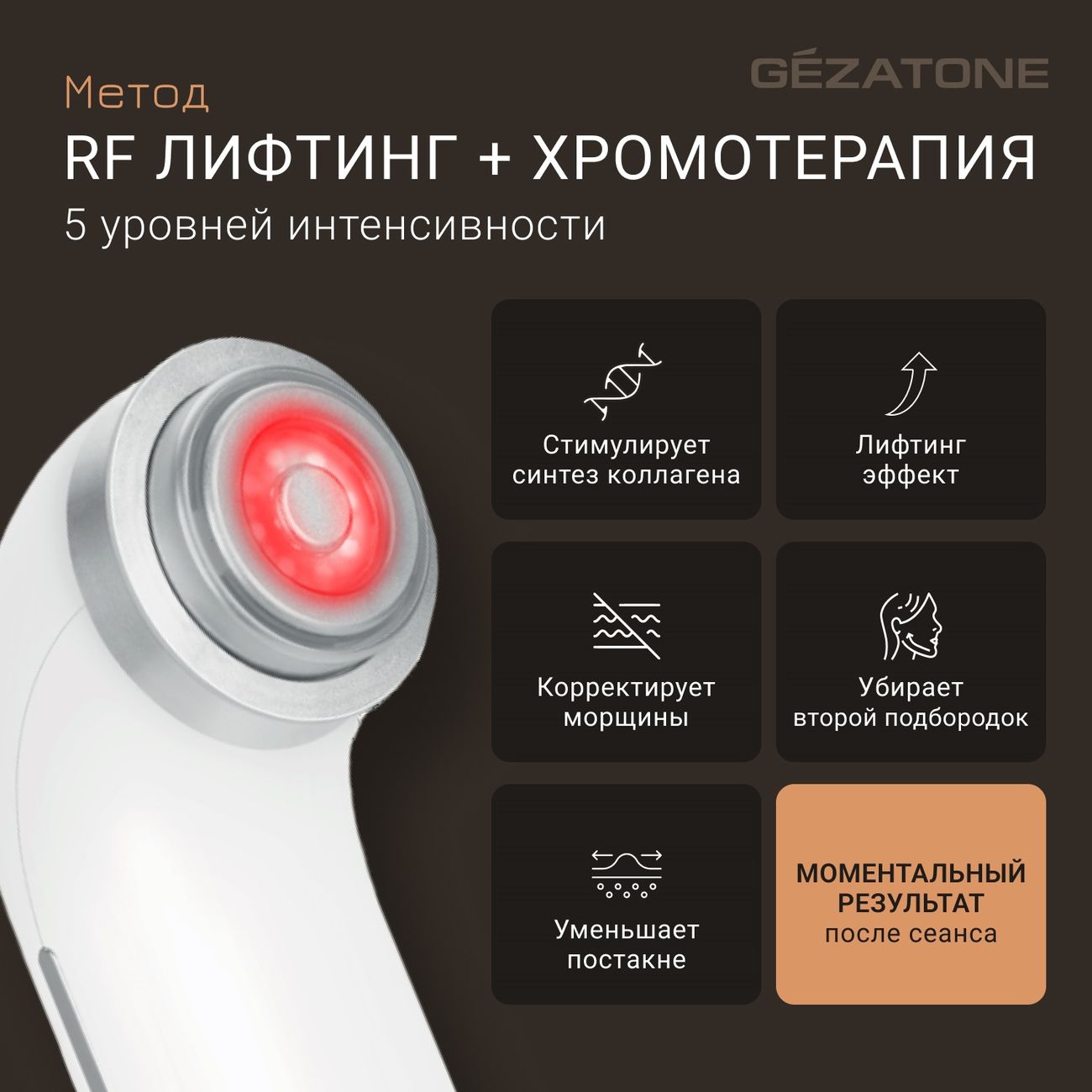 Аппарат Gezatone m1611 предназначен для омоложения и очищения кожи лица и тела. Он помогает повысить тонус эпидермиса, увлажнить его, сократить глубину и количество морщин, очистить поры. Эта модель работает в пяти режимах, позволяет выполнять восемь методик: rf-лифтинг, хромотерапию, вибромассаж, миостимуляцию, микротоковую терапию, дезинкрустацию, ионоферез.