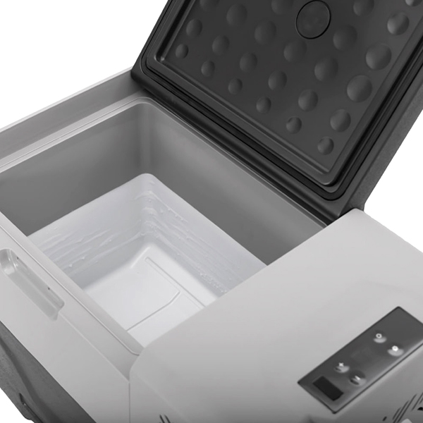 Прибор может получать питание от штатного прикуривателя (12/24 В), электросети (220 В) или встроенного литиевого аккумулятора емкостью 15600 мАч, который обеспечивает до 7 часов автономности. Температура регулируется в диапазоне от -20 до +20°. Вводить настройки можно с электронной панели на корпусе или со смартфона. Холодильник оснащен разъемом USB для зарядки смартфонов и других девайсов. Охлаждение производится компрессором, допустимый угол наклона — 40°.
