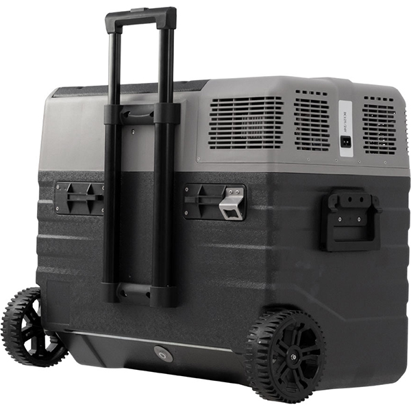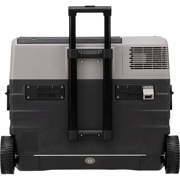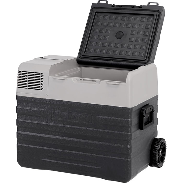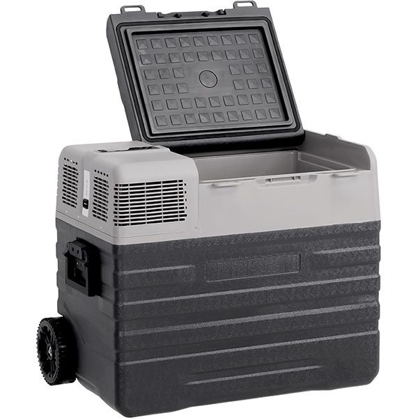 Alpicool NX52 — автомобильный холодильник с объемом внутреннего пространства 52 л. Работает от электросети (110 и 220 В) и прикуривателя (12 и 24 В). Есть USB-разъем для подключения гаджетов и многоступенчатая защита автомобильного аккумулятора от разрядки. Температура регулируется от +20 до -20°С. Управление электронное. Настраивать холодильник можно дистанционно, с помощью мобильного приложения. Внутреннее пространство оснащено светодиодной подсветкой. Компрессор размещен под углом 40°, поэтому не повреждается при езде по бездорожью. Прибор работает тихо (менее 45 дБ). Есть два режима: «Эко» для экономичного энергопотребления и «Турбо» для экстренного охлаждения и замораживания. Габариты корпуса — 54,2 х 68,9 х 42,7 см. Есть колесики и телескопическая ручка для удобства перевозки.