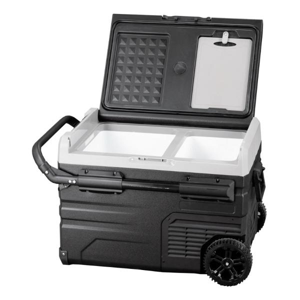 Автохолодильник Alpicool TWW45 работает по компрессорной технологии, максимальный уровень шума — 45 дБ. Он рассчитан на горизонтальную установку. Общий объем — 45 л. Корпус сделан из пластика, внутреннее пространство разделено на два отсека с независимой настройкой температуры.