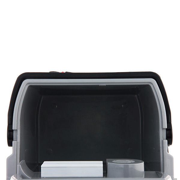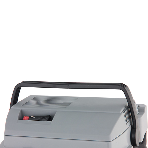 Автомобильный холодильник снабжён широким наплечным ремнём, который значительно облегчает его транспортировку. С наружной стороны расположены крупные карманы, в которых можно хранить столовые приборы или другие полезные предметы. Кроме того, на поверхности устройства расположены специальные отверстия, предназначенные для его фиксации ремнём безопасности.