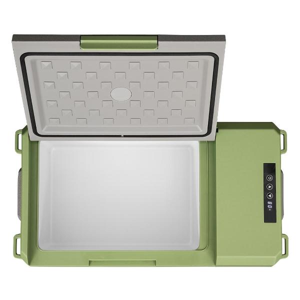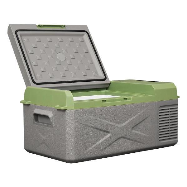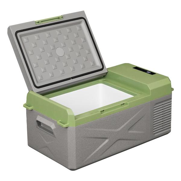 Устройство с компрессорным охлаждением обеспечивает температуру от -20°C до +10°C. Для управления используется электронный блок. Максимальный уровень шума не превышает 39 дБ. Прибор с потребляемой мощностью 60 Вт питается от сети 12 В или 220 В. В комплектацию входит отсоединяемый кабель длиной 1,5 м. Защита аккумулятора автомобиля от разрядки гарантирует безопасность.