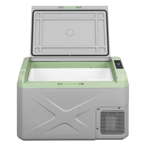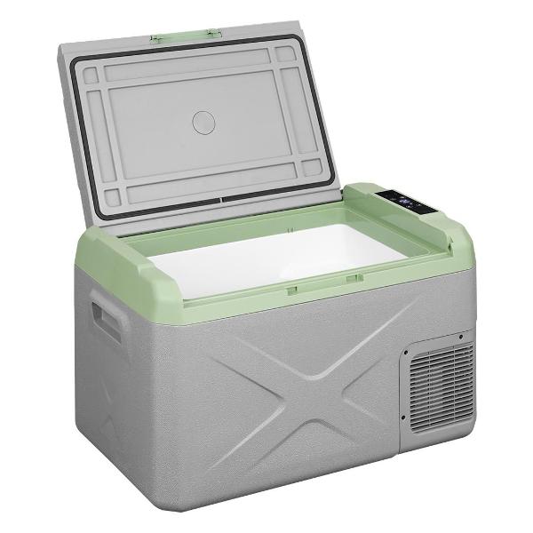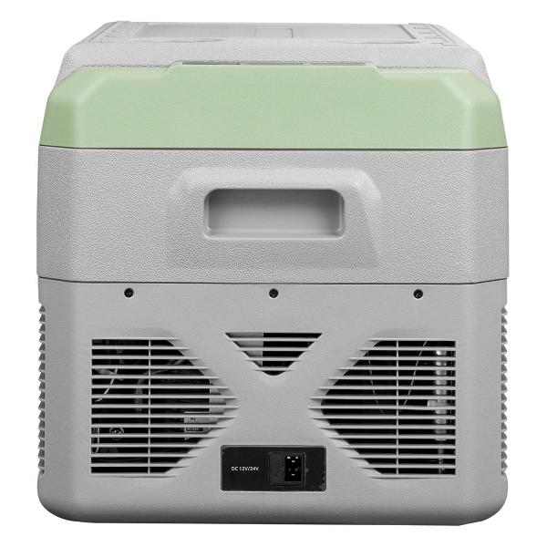 Устройство с компрессорным охлаждением обеспечивает температуру от -20°C до +10°C. Для управления используется электронный блок. Максимальный уровень шума не превышает 45 дБ. Прибор с потребляемой мощностью 60 Вт питается от сети 12 В или 220 В. В комплектацию входит отсоединяемый кабель длиной 1,5 м. Защита аккумулятора автомобиля от разрядки гарантирует безопасность.