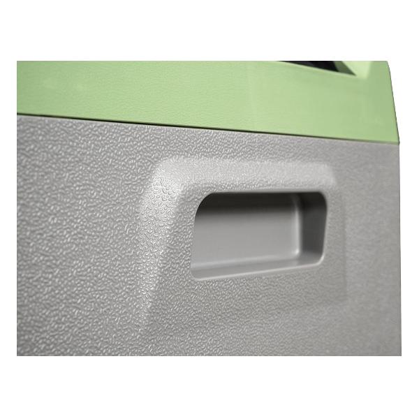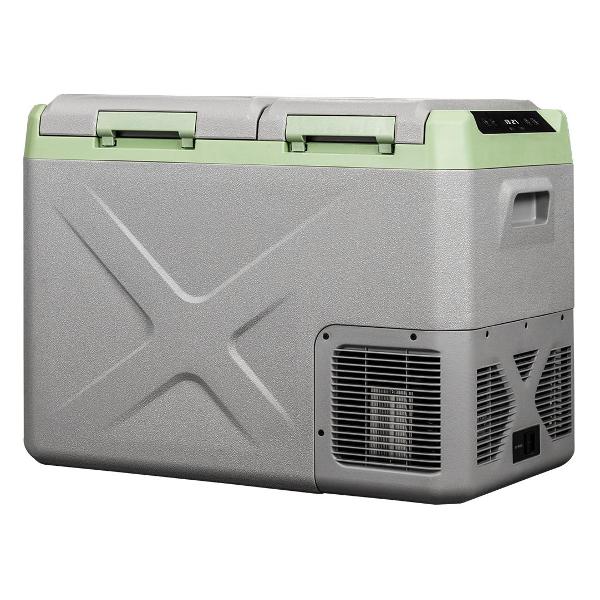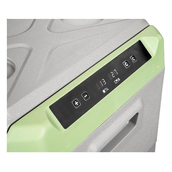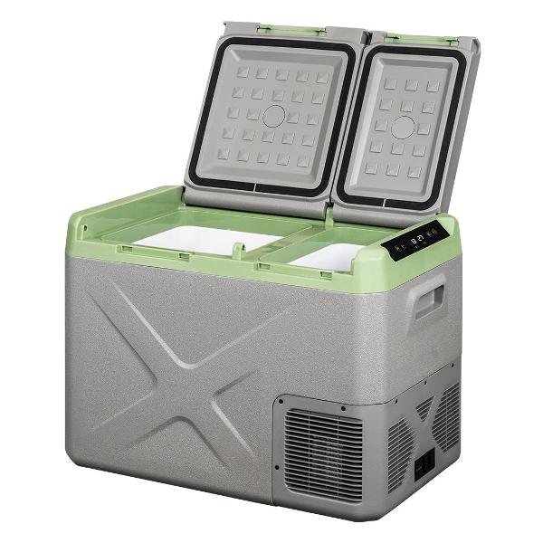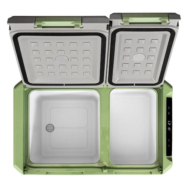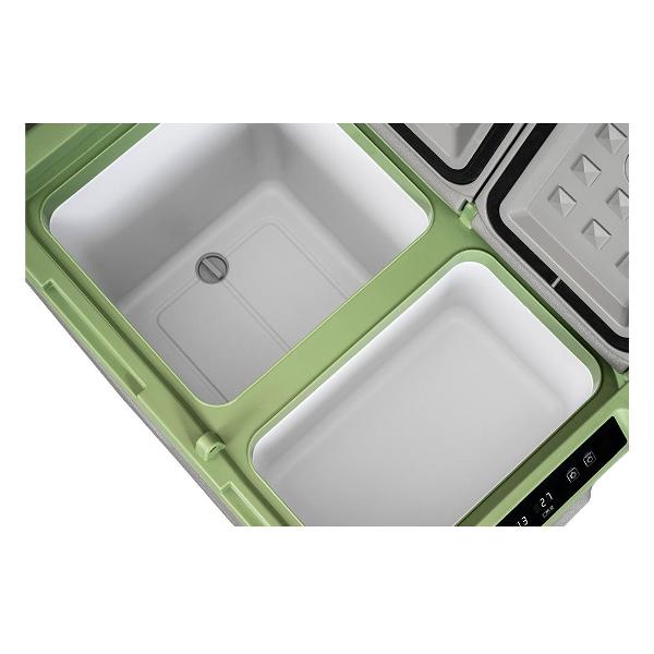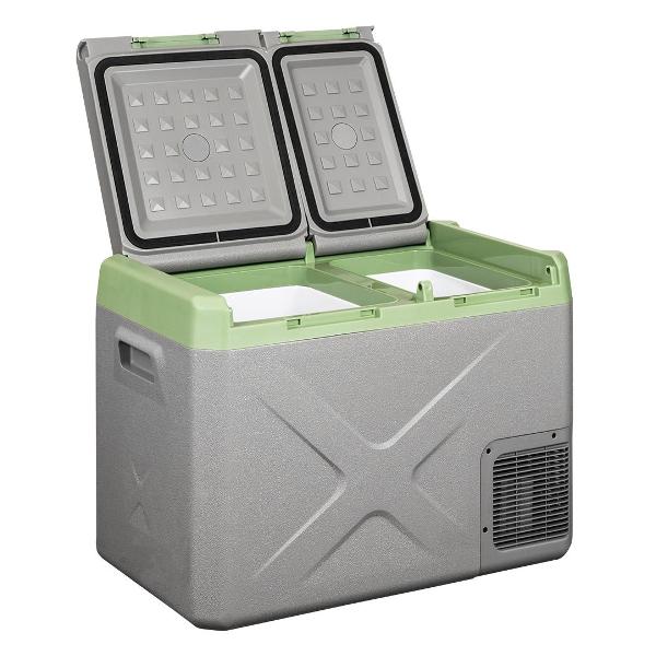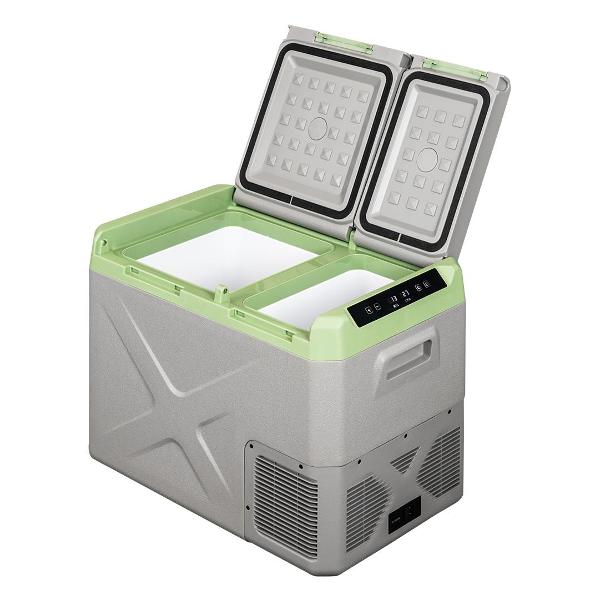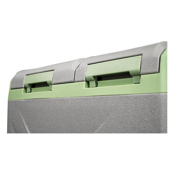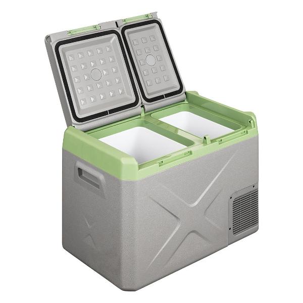Устройство отличается защитой аккумулятора машины от разрядки. Источником питания служит электросеть с напряжением 12 В или 220 В. В комплектацию входит отсоединяемый кабель длиной 1,5 м. Прибор устанавливается в горизонтальном положении. Двухкамерная модель объемом 30 л выполнена в ударопрочном корпусе из пластика с фиксирующимися крышками, перенавешиваемыми дверцами и ручкой для переноски. Габариты равны 44,2х60,3х36,5 см, вес — 12,5 кг.