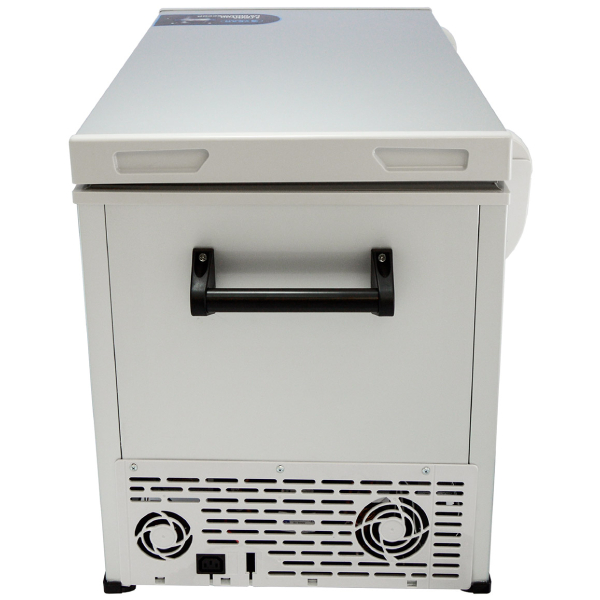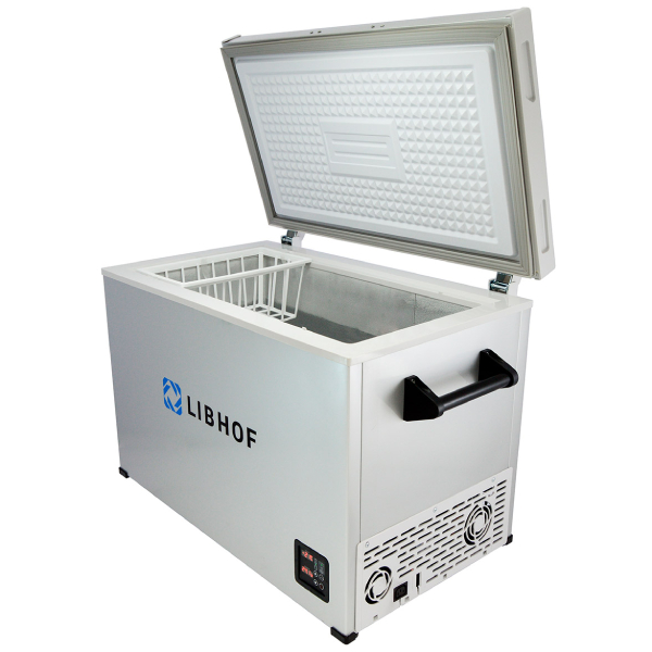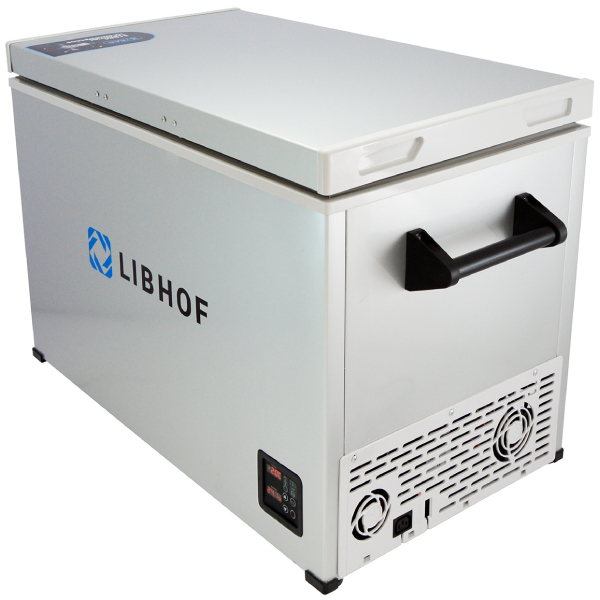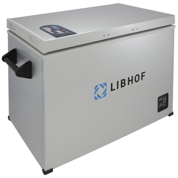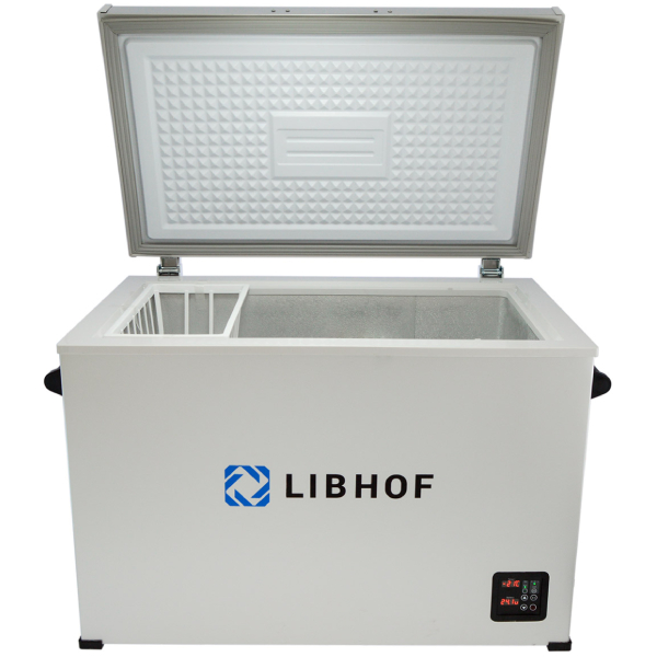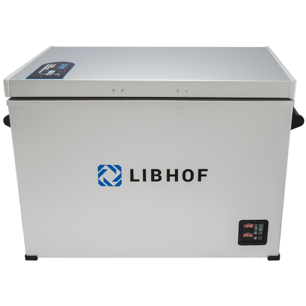Libhof PRO-26 — переносной компрессорный холодильник объемом 110 л. Работает через кабель питания от гнезда прикуривателя с напряжением 12/24 В. Комплектуется автомобильным адаптером питания. Температура регулируется в пределах от -24°С до +10°С. Автохолодильник может работать в режиме «Эко» с минимальным энергопотреблением. Есть трехуровневая система защиты аккумулятора от разряда. Корпус выполнен из листовой стали, устойчивой к механическим повреждениям. По бокам есть ручки для переноски прибора. Габариты холодильника: 63,5х52х81,5 см. Вес — 24 кг.