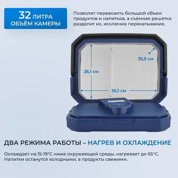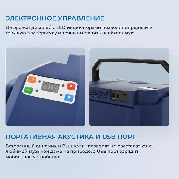 Шикарная модель, если выезжаете большой компанией на природу. Конкретно у нас на шестерых удается запастись шашлыком. Даже встроенная колонка есть, если кому надо - но по звучанию с автоакустикой, конечно, не сравнится. Удобная ручка для переноски. Охлаждает примерно до +8-10 градусов - вполне нормально, чтобы мясо довезти до точки сбора. Кабель двухметровый - чтобы поближе поставить и не бегать каждый раз.
