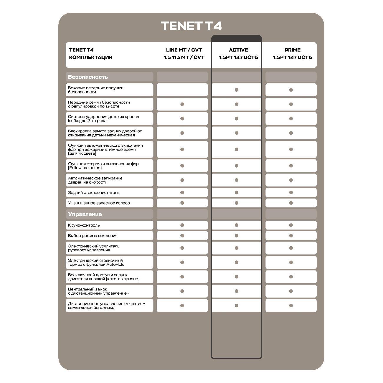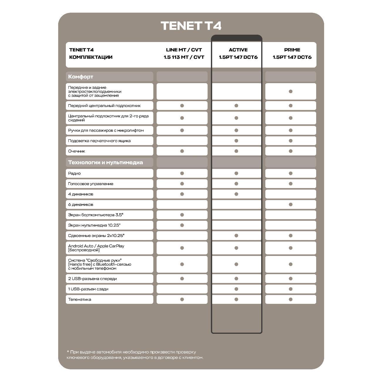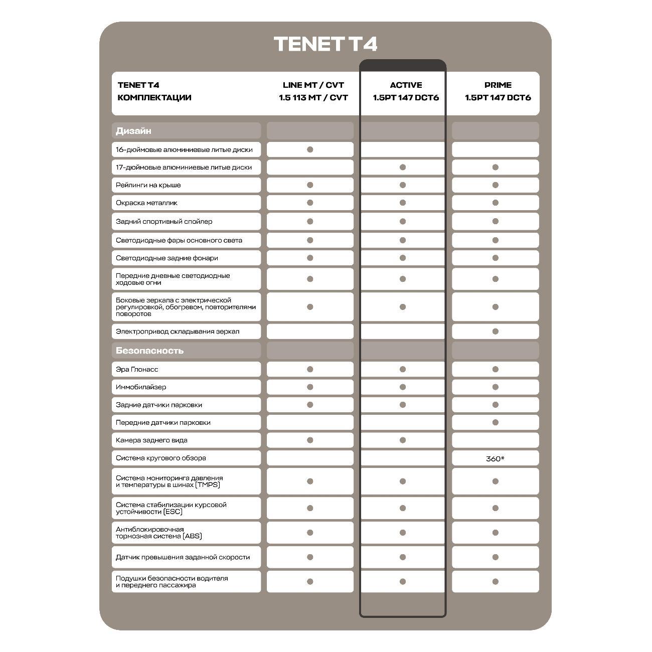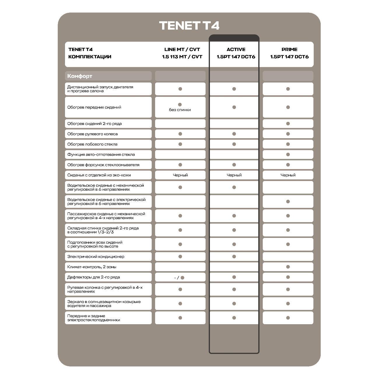 Вы можете купить Автомобиль бензиновый TENET T4 Active 1.5T DCT (Черный) в магазинах М.Видео по доступной цене. Автомобиль бензиновый TENET T4 Active 1.5T DCT (Черный): подробное описание, фото и отзывы реальных покупателей, характеристики, возможность скачать инструкции и подобрать аксессуары.