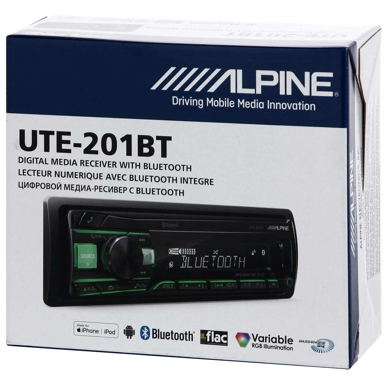 Стильная и современная автомобильная магнитола Alpine UTE-201BT поможет разнообразить ваши поездки и сделать их веселее. Продвинутый интерфейс с ярким ЖК-экраном даёт возможность удобного и наглядного управления, к вашим услугам физические кнопки с подсветкой и поворотные переключатели для регулировки звука и поиска радиостанций.