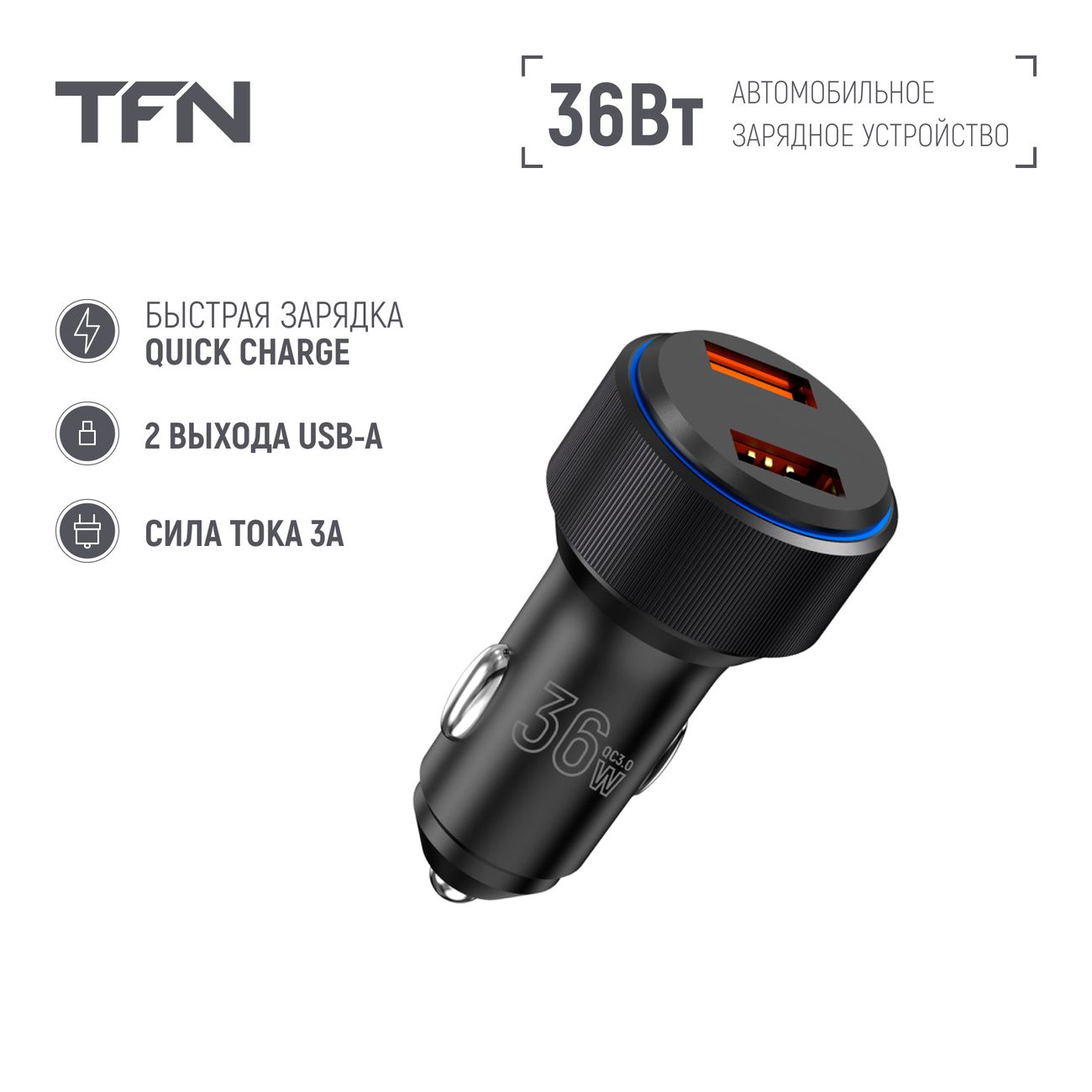 Вы можете купить Автомобильное зарядное устройство TFN 2xUSB QC3.0 36W Black б/к (TFN-CCRPD13) в магазинах М.Видео по доступной цене. Автомобильное зарядное устройство TFN 2xUSB QC3.0 36W Black б/к (TFN-CCRPD13): подробное описание, фото и отзывы реальных покупателей, характеристики, возможность скачать инструкции и подобрать аксессуары.