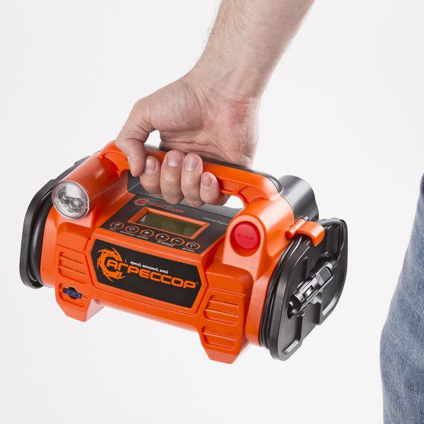 Автомобильный цифровой компрессор «Агрессор» AGR-40 Digital подключается к прикуривателю. Он оснащен фонариком, с помощью которого можно подсвечивать рабочую зону в ночное время. Есть спускной клапан — позволяет уменьшать уровень давления в шинах. Встроенный предохранитель защищает устройство от перепадов напряжения в сети. Производительность — 35 л/мин. Мощность поршневого двигателя — 160 Вт. Может работать непрерывно до 15 минут.