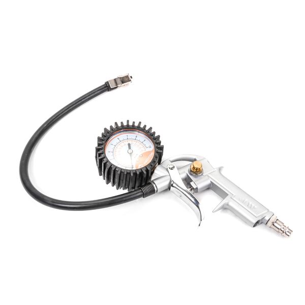 Длина витого воздушного шланга из полиуретана 10 м. Предусмотрен спускной клапан — позволяет регулировать давление в колесах. Корпус из металла устойчив к коррозии. Модель сама отключается при полном заполнении ресивера. На ручке установлен аналоговый манометр. С его помощью можно контролировать уровень давления в процессе подкачки.