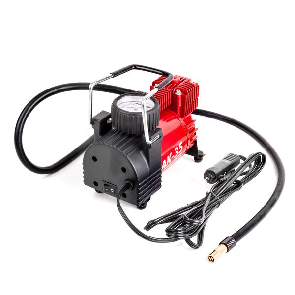 AutoProfi AK-35 — автомобильный компрессор с поршневым мотором. Подойдет для легковых машин. Встроенный манометр позволяет контролировать давление в шинах во время подкачки. Производительность устройства — 35 л/мин. Мощность — 150 Вт. Может работать беспрерывно до 20 минут. Длина зарядного шнура равна 3 м, шланга — 1 м.