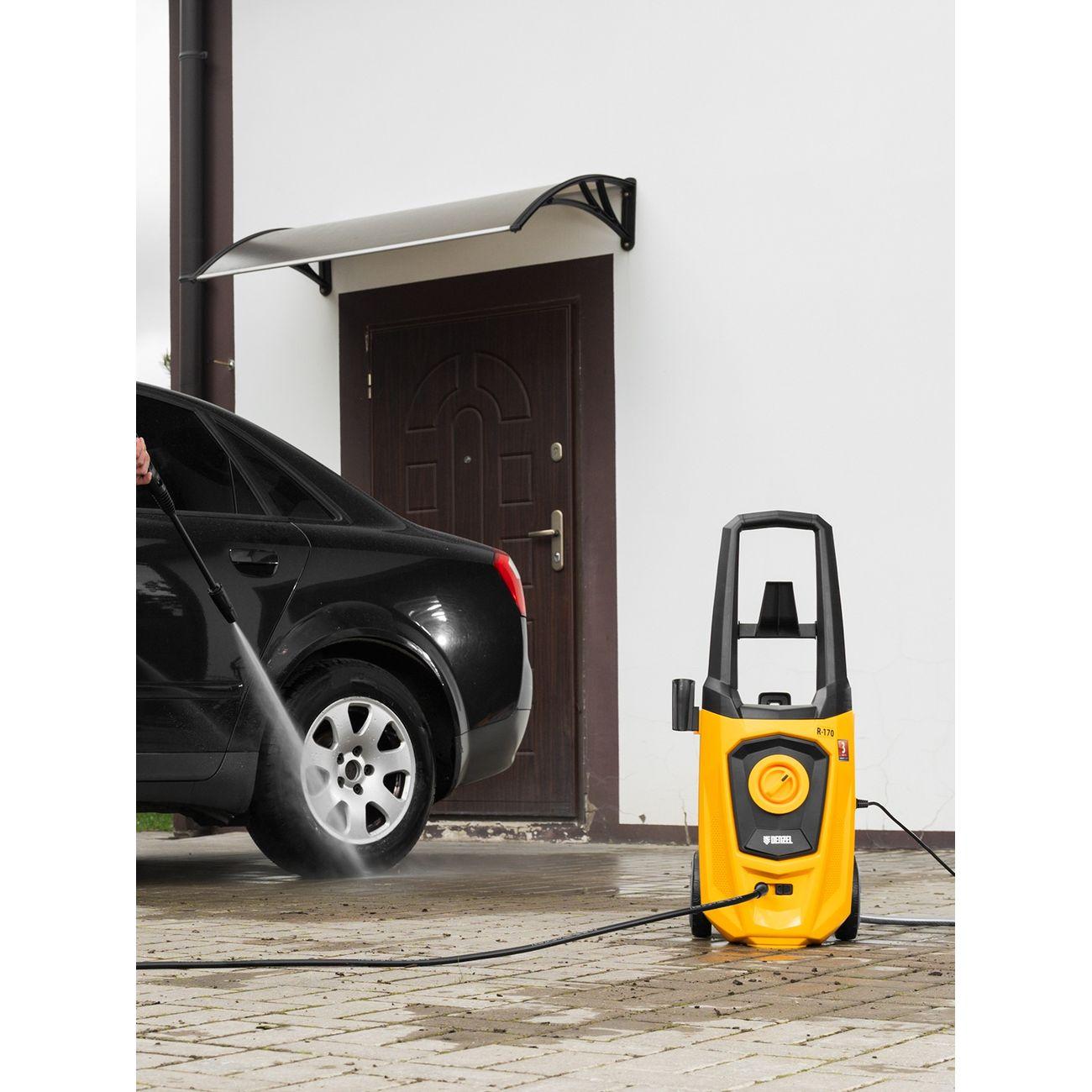 брал по отзывам, очем желею, все отзывы походу пишут какие то боты, там и близко нету 170 бар, максимум 100, начал пробовать ей мыть, еле как грязь сбивает, и то не большей слой грязи, а если ей мыть что то сильно загрязнение то можно даже не раскручивать, в детских брызгалках больше давление.