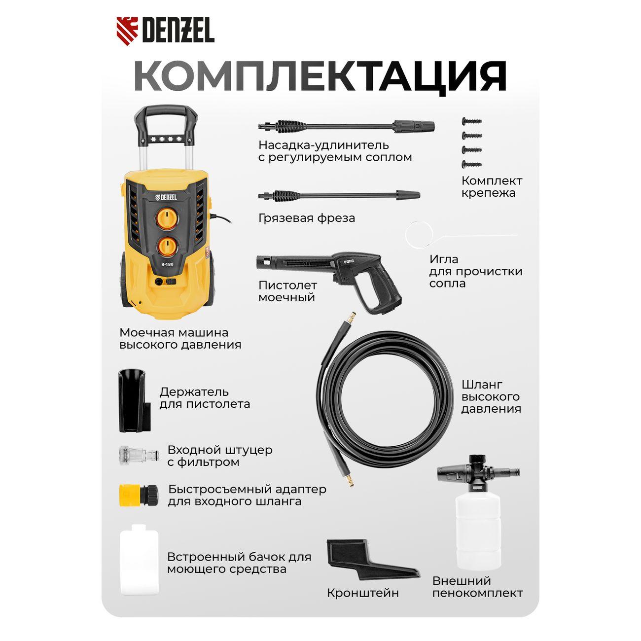 Вы можете купить Автомойка Denzel R-180 в магазинах М.Видео по доступной цене. Автомойка Denzel R-180: подробное описание, фото и отзывы реальных покупателей, характеристики, возможность скачать инструкции и подобрать аксессуары.