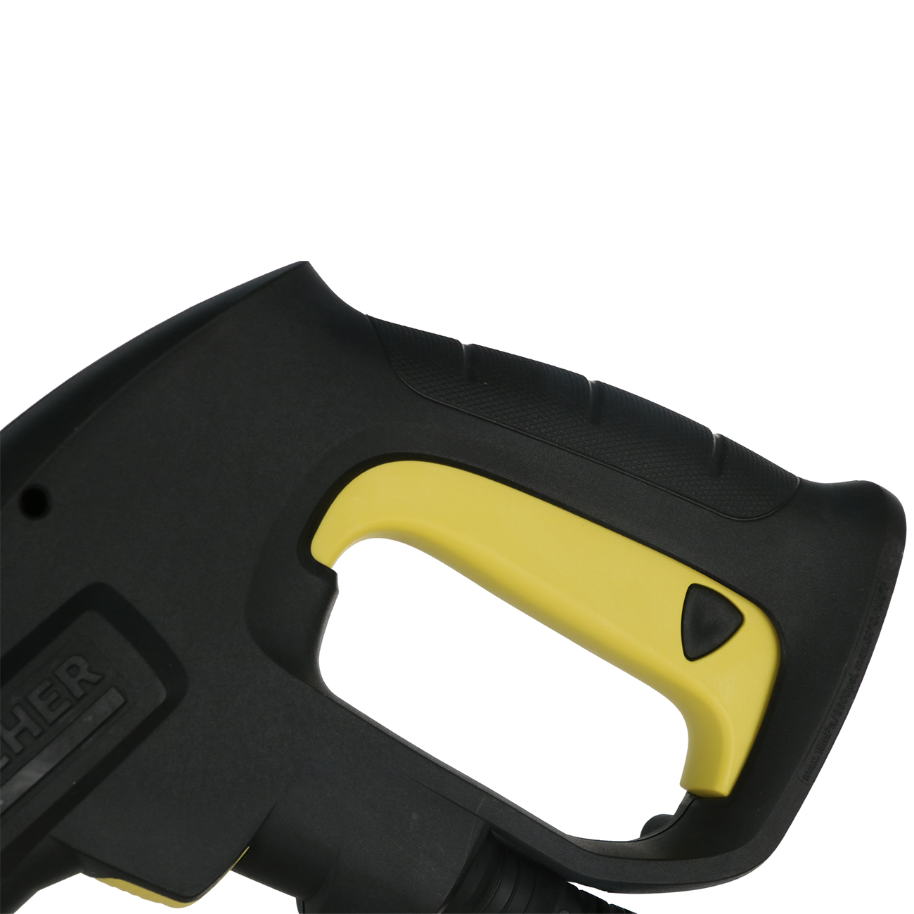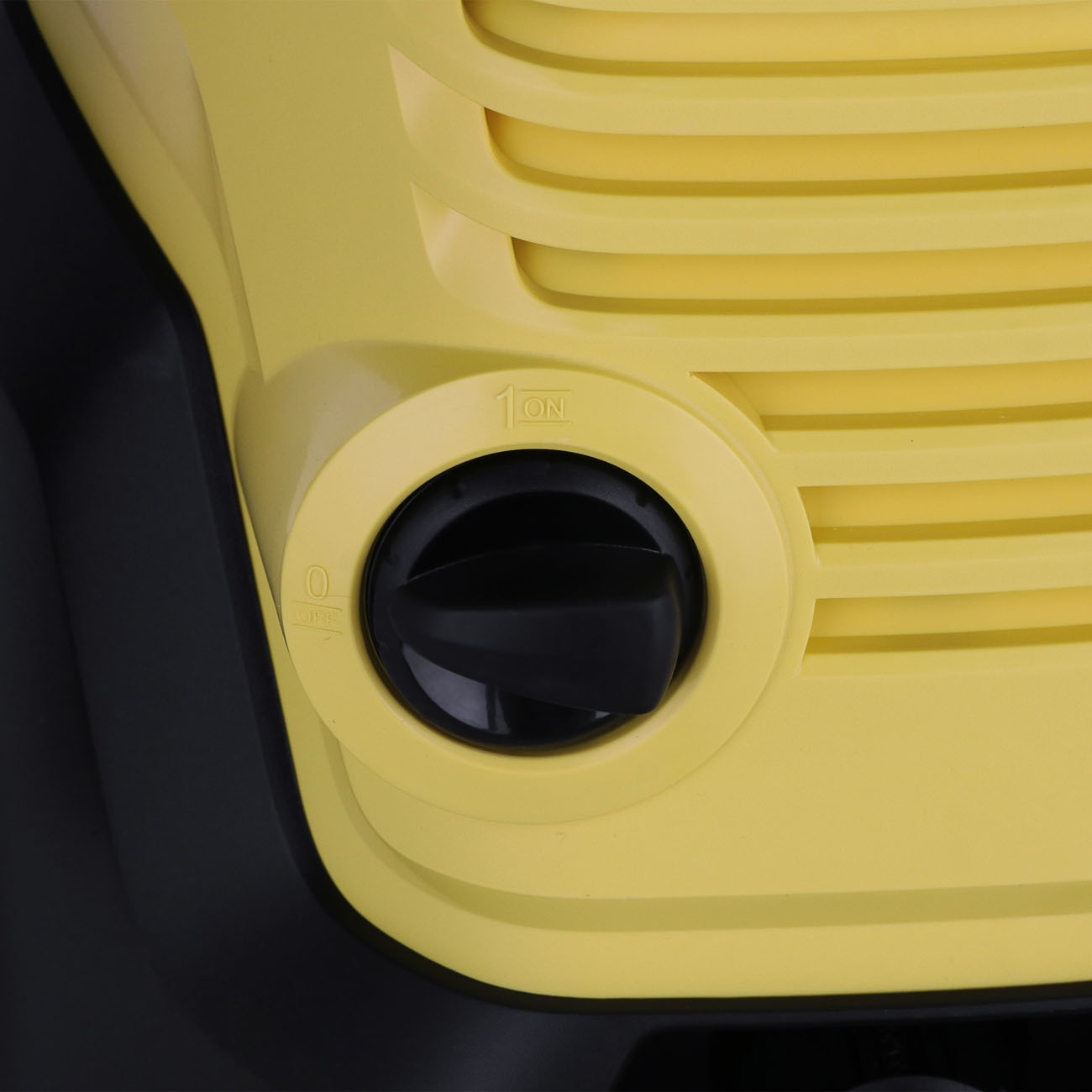 Удобная ручка и колесики упрощают перемещение и переноску автомойки. Корпус выполнен из пластика и оснащен отсеком, куда можно сложить насадки. При необходимости последние можно закрепить на корпусе, что удобно, когда в процессе работы требуется периодически менять их. Мойка окрашена в желтый и черный цвета. Вес модели при габаритных размерах 90,1х32,9х36,9 см составляет 12,45 кг.