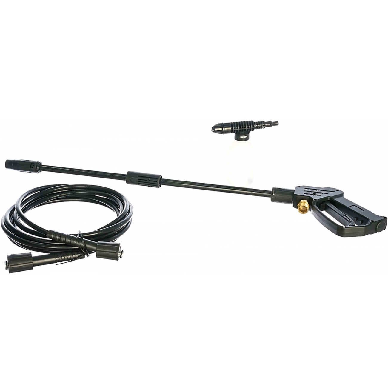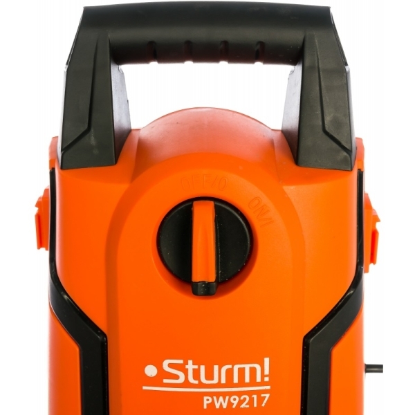 Автомойка Sturm! PW9217 работает как от водопровода, так и забирая воду из открытых емкостей, с производительностью 6,5 л/мин. Ее максимальное давление составляет 110 бар, потребляемая мощность 1700 Вт. Устройство подключается к сети 220 В. Длина шланга высокого давления — 5 м.