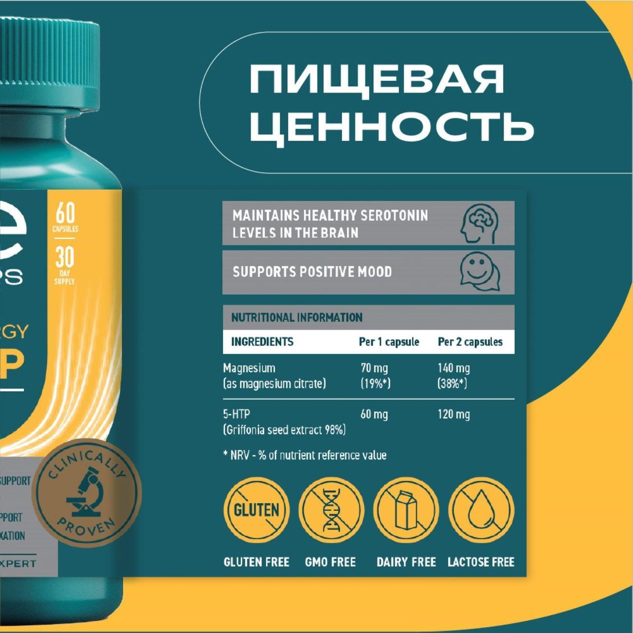Витаминный комплекс для красоты и здоровья Uesupps Ultra Energy 5-HTP UES020571 — мягкие капсулы, которые предназначены для поддержки нервной системы, улучшения эмоционального состояния, нормализации сна и повышения уровня энергии. Основные действующие вещества — экстракт семян гриффонии простолистной и магния цитрат.