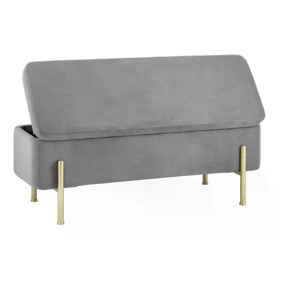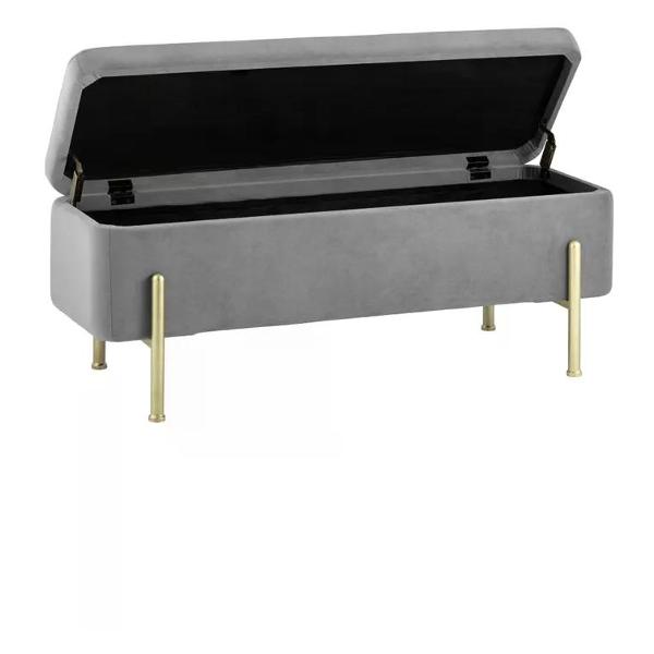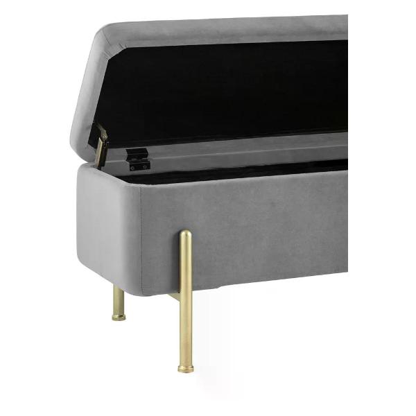 Использование высококачественного велюра антивандального покрытия обеспечивает не только красоту и комфорт, но и надежность при постоянной эксплуатации. Это отличный выбор для любой комнаты — будь то мини прихожая, гостиная или даже ванная — где нужна мебель с большим объемом хранения и удобным сиденьем. Ножки из металла в золотом цвете выдерживают вес до 150 кг, гарантируя долговечность и устойчивость изделия в повседневном использовании.