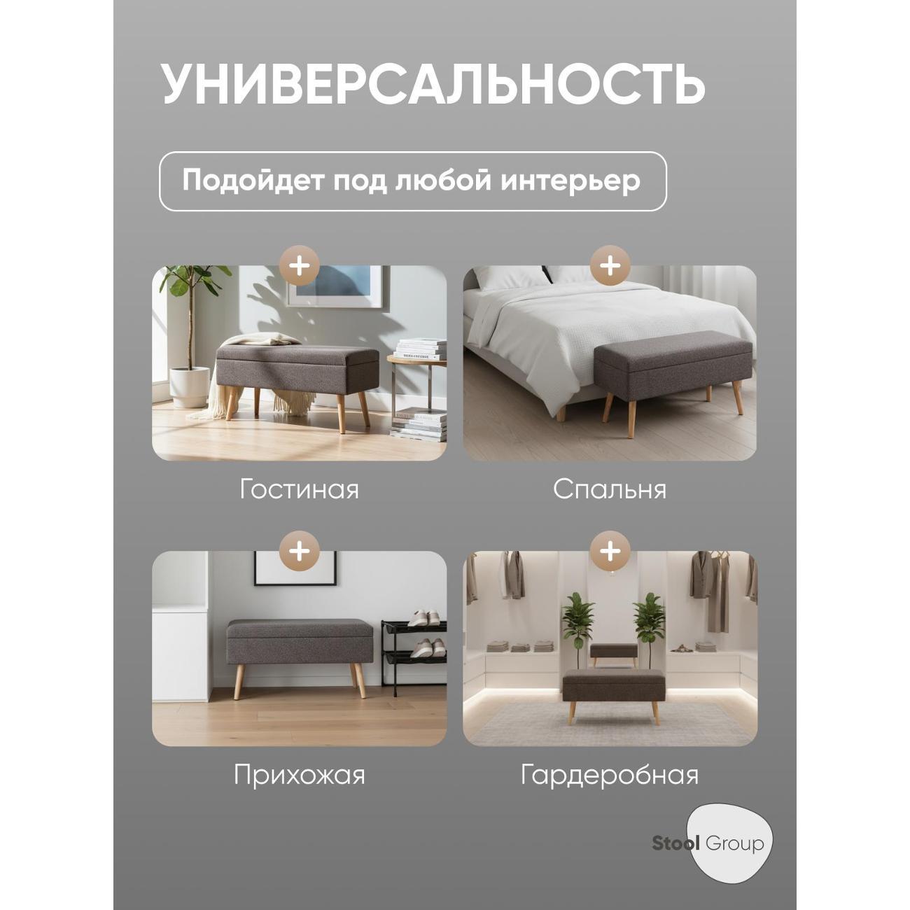 В прихожей изделие остаётся функциональным и удобным. Его можно использовать как банкетку в прихожую, обеспечивая комфорт при переобувании и создавая аккуратную посадочную зону у входа. За счёт мягкого сиденья и компактной прямоугольной формы модель нередко выбирают как пуф-банкетку, когда требуется универсальное и мобильное решение. В ежедневном использовании банкетка хорошо проявляет себя как пуф-банкетка в прихожую, позволяя удобно организовать пространство входной зоны. Для вытянутых помещений или размещения вдоль стены изделие может выполнять роль длинного пуфика для прихожей, оставаясь устойчивым и удобным для посадки.