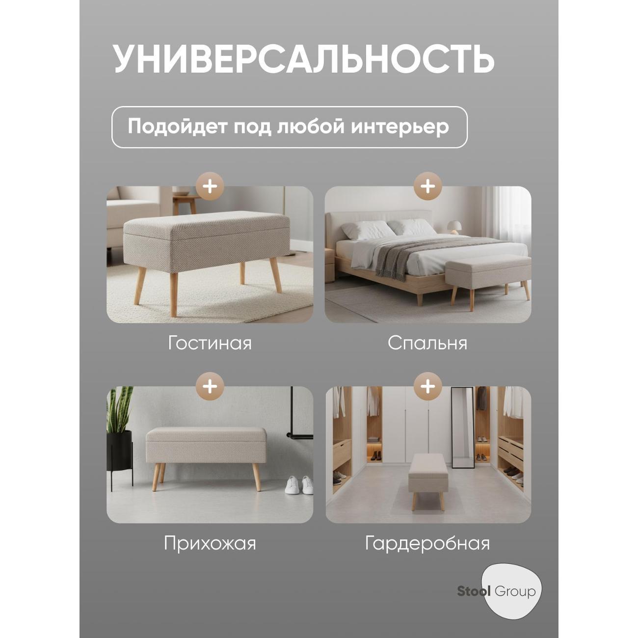 В прихожей изделие остаётся функциональным и удобным. Его можно использовать как банкетку в прихожую, обеспечивая комфорт при переобувании и создавая аккуратную посадочную зону у входа. За счёт мягкого сиденья и компактной прямоугольной формы модель нередко выбирают как пуф-банкетку, когда требуется универсальное и мобильное решение. В ежедневном использовании банкетка хорошо проявляет себя как пуф-банкетка в прихожую, позволяя удобно организовать пространство входной зоны. Для вытянутых помещений или размещения вдоль стены изделие может выполнять роль длинного пуфика для прихожей, оставаясь устойчивым и удобным для посадки.