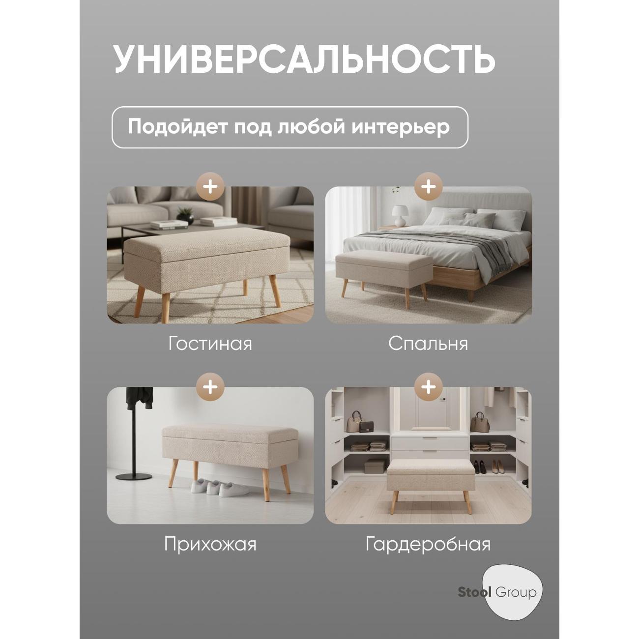 В прихожей изделие остаётся функциональным и удобным. Его можно использовать как банкетку в прихожую, обеспечивая комфорт при переобувании и создавая аккуратную посадочную зону у входа. За счёт мягкого сиденья и компактной прямоугольной формы модель нередко выбирают как пуф-банкетку, когда требуется универсальное и мобильное решение. В ежедневном использовании банкетка хорошо проявляет себя как пуф-банкетка в прихожую, позволяя удобно организовать пространство входной зоны. Для вытянутых помещений или размещения вдоль стены изделие может выполнять роль длинного пуфика для прихожей, оставаясь устойчивым и удобным для посадки.