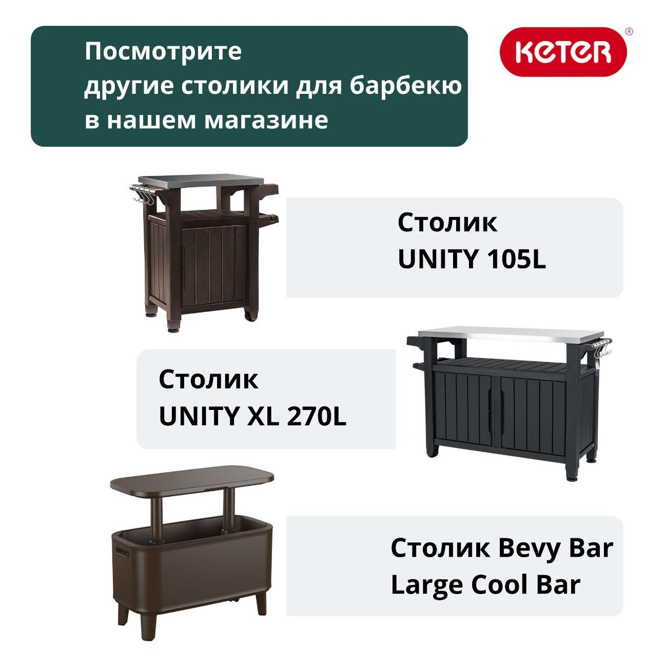 Вы можете купить Барная стойка Keter Bevy Bar Large Cool Bar_Графит в магазинах М.Видео по доступной цене. Барная стойка Keter Bevy Bar Large Cool Bar_Графит: подробное описание, фото и отзывы реальных покупателей, характеристики, возможность скачать инструкции и подобрать аксессуары.