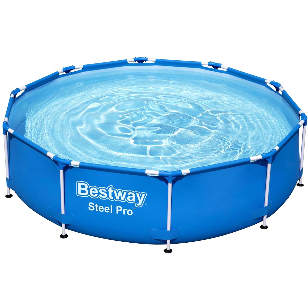 Каркасный бассейн Bestway Steel Pro размером 305 х 66 см предназначен для сезонного использования — на холодное время года его нужно сливать и убирать в теплое помещение. Время сборки — около 30 минут, дополнительных приспособлений не потребуется. Объем бассейна — 4678 л (при заполнении на 90%). Каркас изготовлен из стальных труб, для защиты от коррозии их покрывает слой пластика. Из этого же материала выполнены Т-образные соединители (FrameLink System), которые не позволят стыкам начать ржаветь. Высокую прочность чаши обеспечивает трехслойный материал ПВХ: между двумя слоями винила расположена сетка из полиэстера. Модель работает с фильтровальной системой диаметром 32 мм. В комплекте поставляется набор для ремонта. Слив воды осуществляется при помощи встроенного сливного клапана с адаптером для садового шланга.