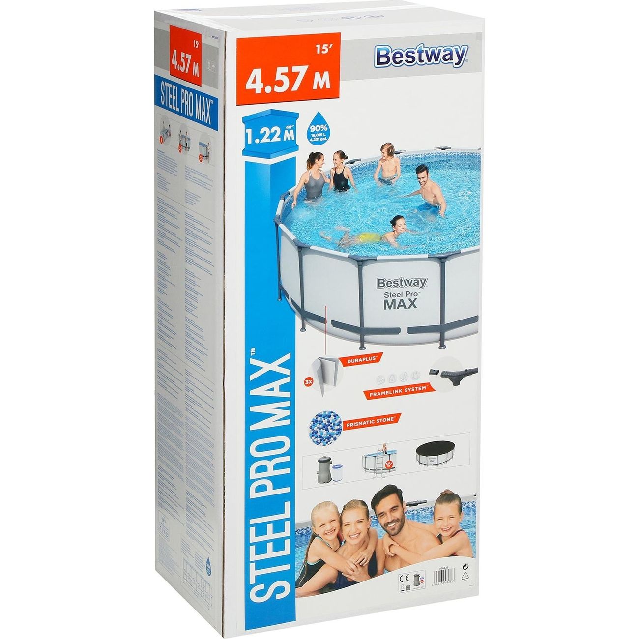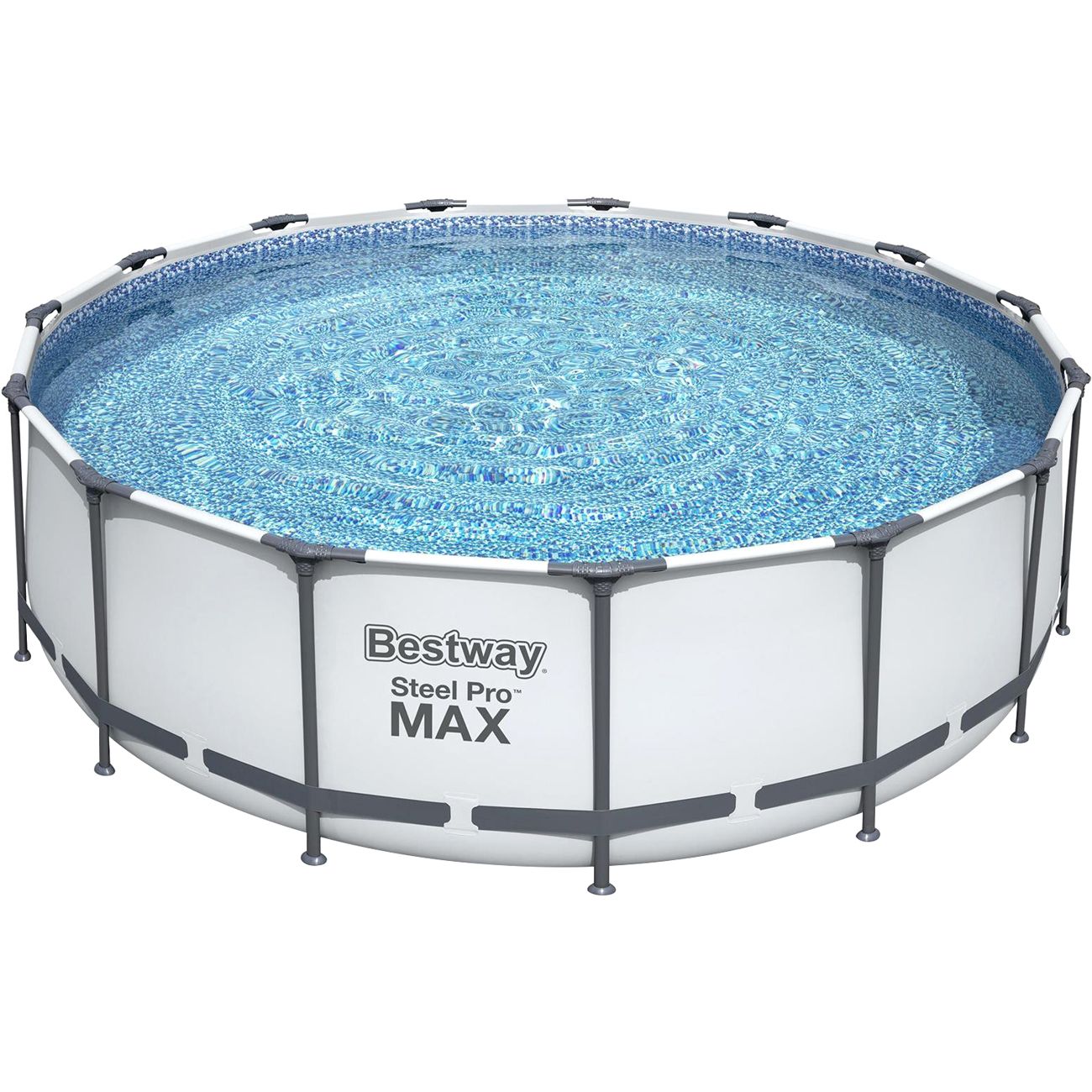 Каркасный бассейн Bestway Steel Pro Max размером 457 х 122 см предназначен для сезонного использования — на холодное время года его нужно сливать и убирать в теплое помещение. Время сборки — около 2 часов, дополнительных приспособлений не потребуется. Объем бассейна — 16015 л (при заполнении на 90%). Каркас изготовлен из оцинкованных стальных труб. Т-образные соединители (FrameLink System) сделаны из пластика и не позволят стыкам начать ржаветь. Высокую прочность чаши обеспечивает трехслойный материал ПВХ: между двумя слоями винила расположена сетка из полиэстера. В комплекте поставляются насос-фильтр с производительностью 3028 л/час, картридж, лестница высотой 122 см, тент, набор для ремонта. Слив воды осуществляется при помощи встроенного сливного клапана с адаптером для садового шланга.