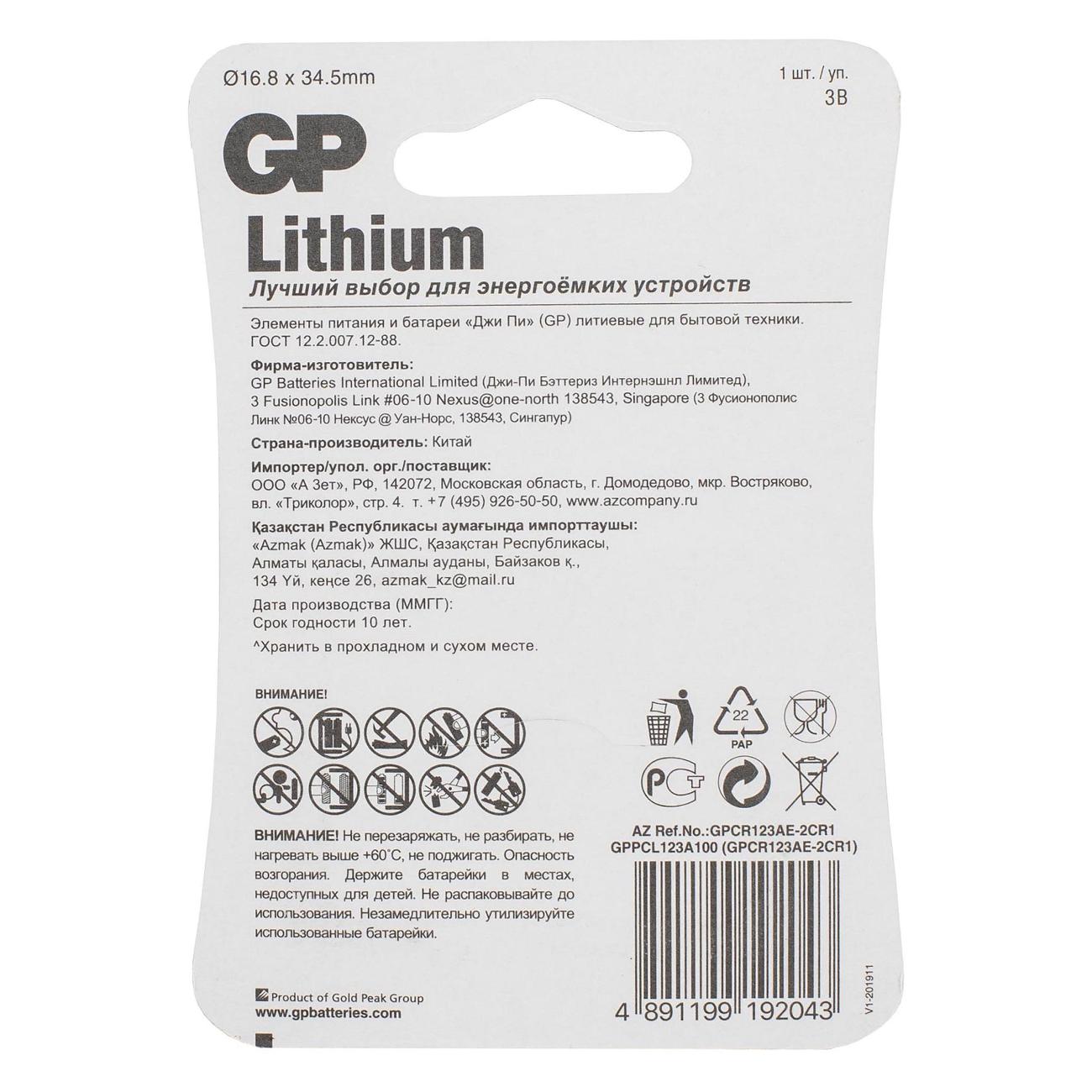 Вы можете купить Батарейка литиевая GP CR123AE-2CR2 в магазинах М.Видео по доступной цене. Батарейка литиевая GP CR123AE-2CR2: подробное описание, фото и отзывы реальных покупателей, характеристики, возможность скачать инструкции и подобрать аксессуары.
