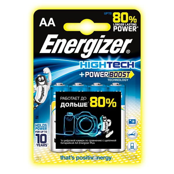 Вы можете купить Батарея Energizer High Tech AA-LR06 4 шт в магазинах М.Видео по доступной цене. Батарея Energizer High Tech AA-LR06 4 шт: подробное описание, фото и отзывы реальных покупателей, характеристики, возможность скачать инструкции и подобрать аксессуары.