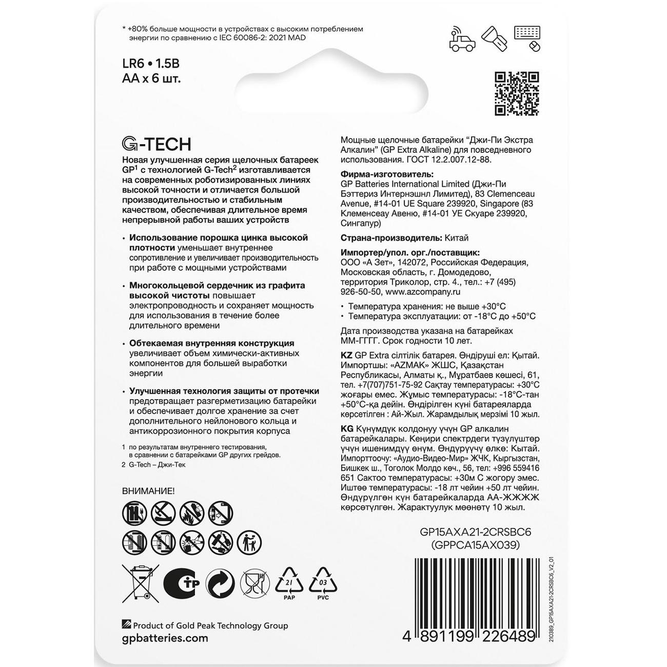 Вы можете купить Батарея GP Extra G-Tech АА 6шт. GP15AXA21-2CRSBC6 в магазинах М.Видео по доступной цене. Батарея GP Extra G-Tech АА 6шт. GP15AXA21-2CRSBC6: подробное описание, фото и отзывы реальных покупателей, характеристики, возможность скачать инструкции и подобрать аксессуары.