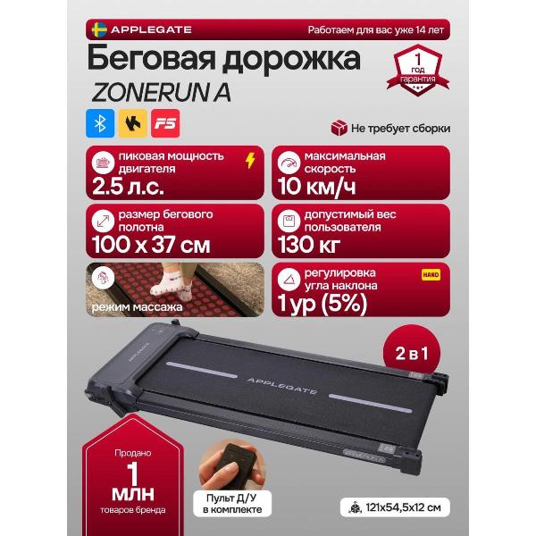 Вы можете купить Беговая дорожка Applegate ZONERUN A в магазинах М.Видео по доступной цене. Беговая дорожка Applegate ZONERUN A: подробное описание, фото и отзывы реальных покупателей, характеристики, возможность скачать инструкции и подобрать аксессуары.