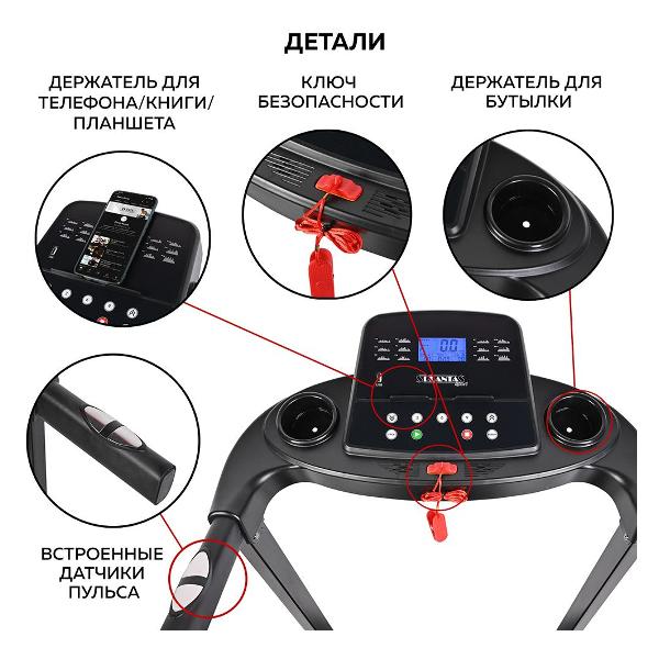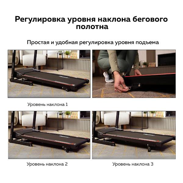Беговая дорожка хорошего качества, занималась в зале и взяла её для домашних занятий, отличный вариант, полностью выполняет свои функции. Механизм устойчивый и не хлипкий, стильно выглядит, есть 12 програм, измеряет пульс и показывает сколько калорий сжёг, удобно, что можно хранить в вертикальном положении, я очень довольна приобретением