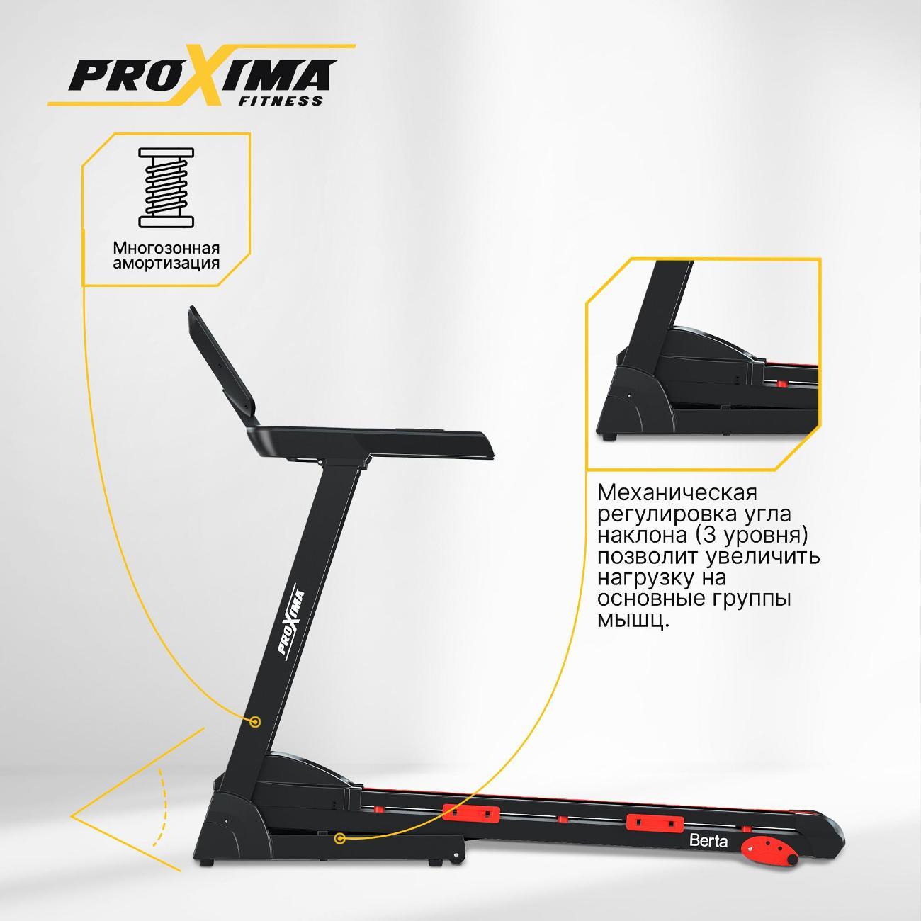 Электрическая беговая дорожка Proxima Berta - надежная и практичная, рекомендована для индивидуального домашнего использования.