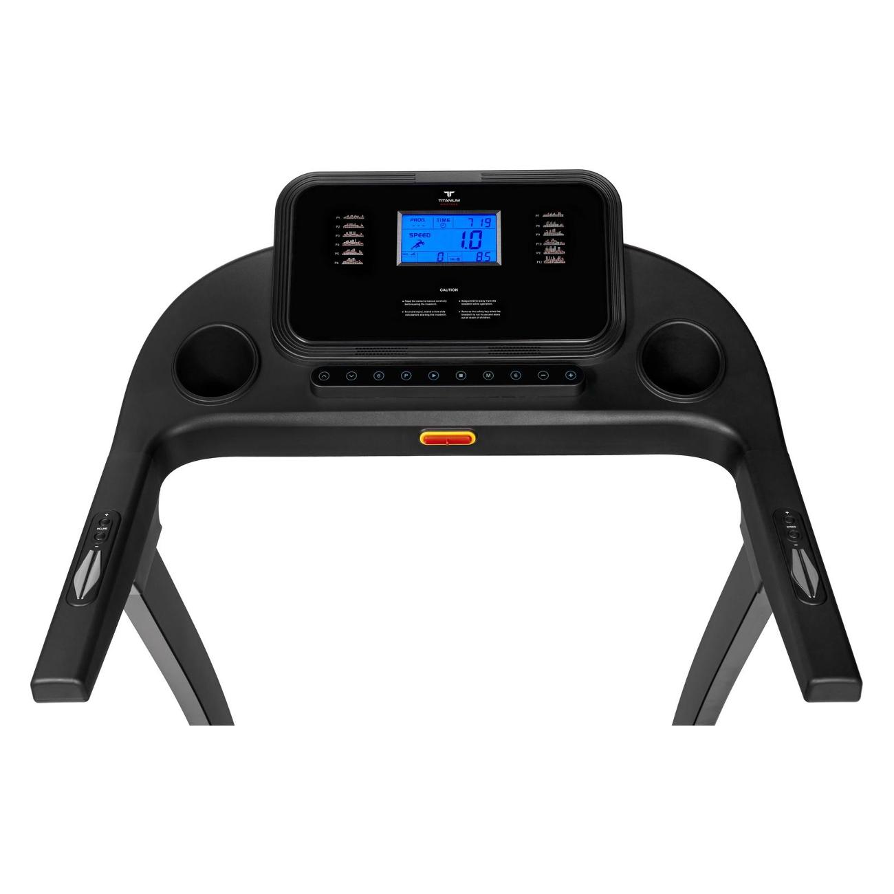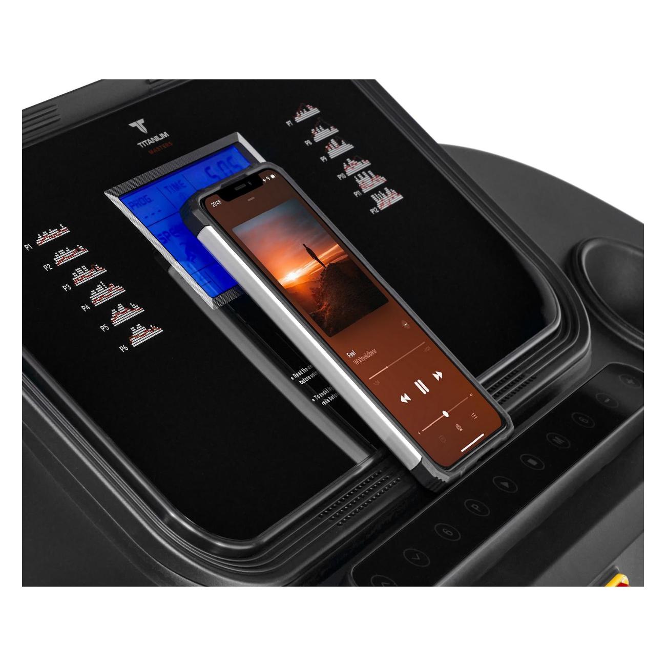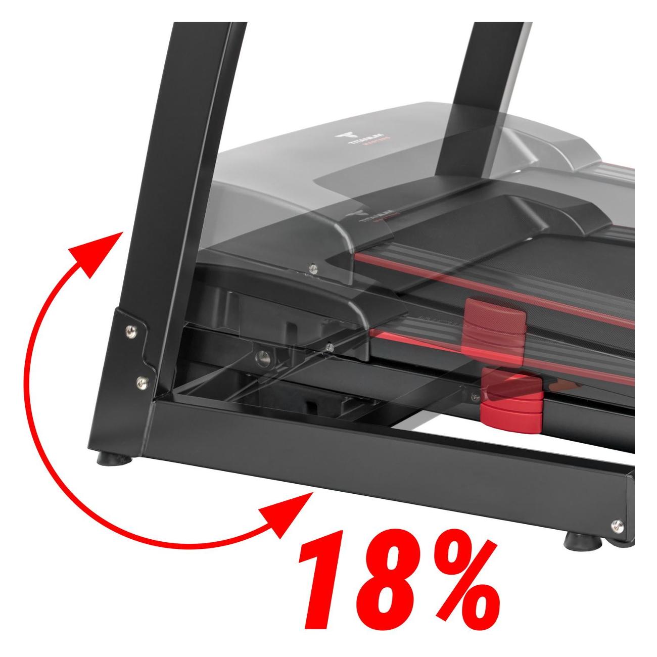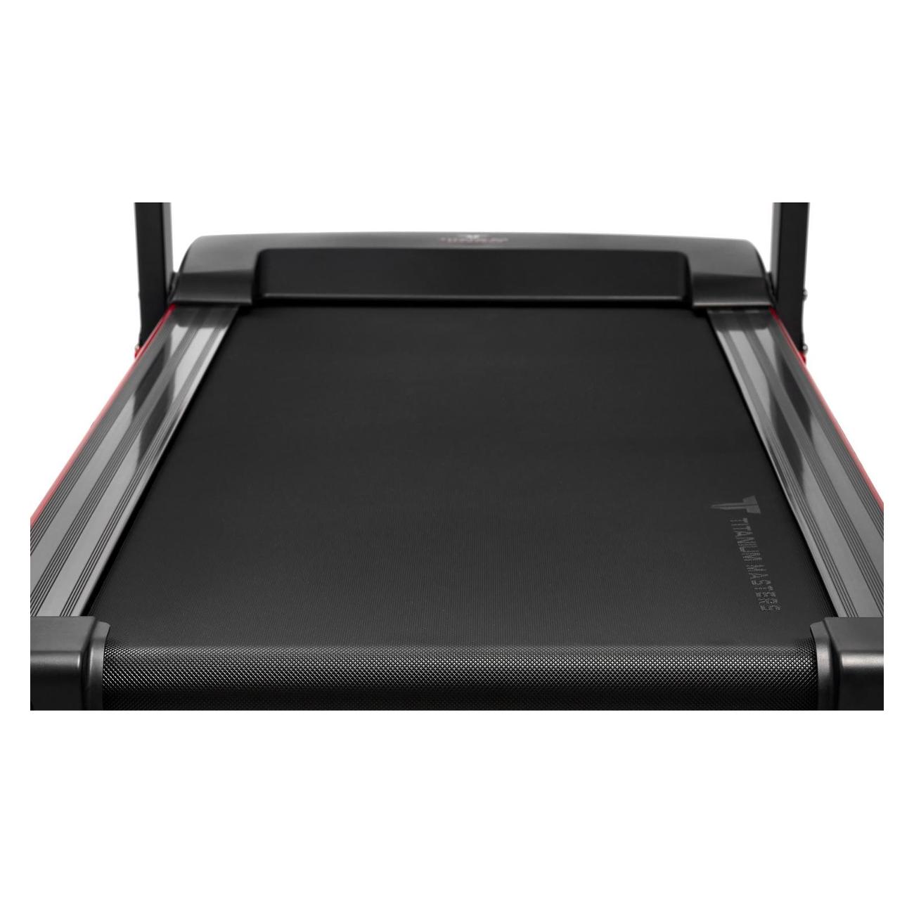 Беговая дорожка Titanium Masters Physiotech A360 оснащена дополнительными кнопками управления на поручнях. Там же расположены датчики пульса. Можно отслеживать их показания на большом электронном дисплее. Тренажер подходит для спортсменов, чей вес не превышает 140 кг. Размеры бегового полотна — 132х47 см. Модель оборудована двигателем мощностью 3 л.с, разгоняющим устройство до 18 км/ч. Возможно изменять угол наклона для увеличения или уменьшения желаемой нагрузки. Тренажер складывается пополам и в таком положении занимает в два раза меньше места. Для транспортировки беговой дорожки по квартире предусмотрены колесики. Габариты — 178х76х29,5 см. Вес — 64 кг.