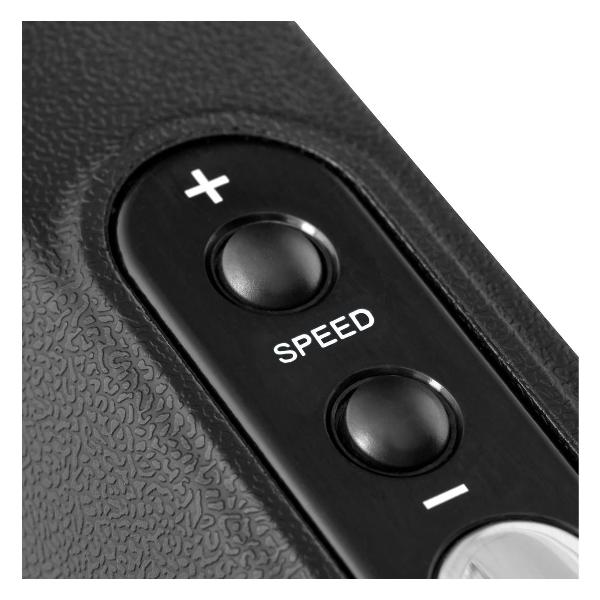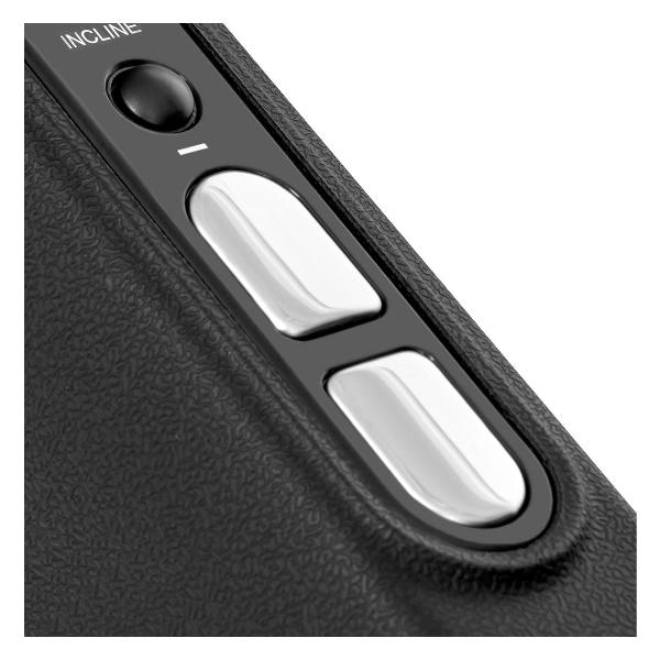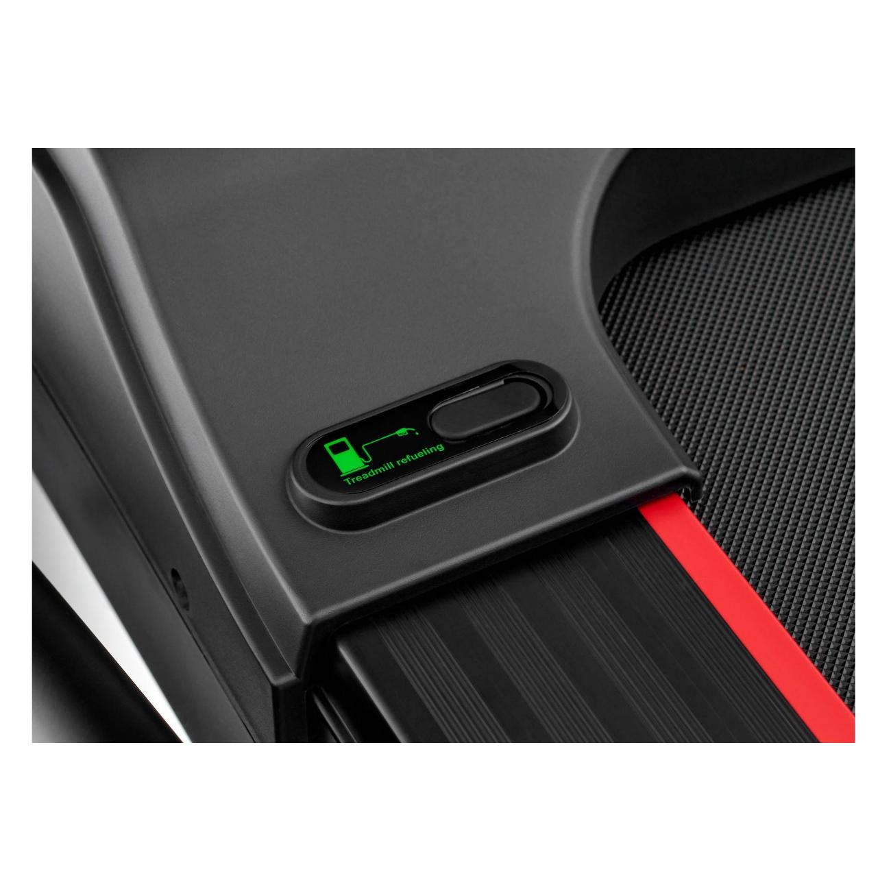 Сенсорная панель и шайба-джойстик с интуитивно понятным обозначением делают управлением простым. В нижней части дисплея размещена подставка для смартфона. Прибор питается от сети 220 В. Модель с регулируемым углом наклона выдерживает нагрузку до 160 кг. Конструкция размером 192х88,5х33 см весит 88 кг. Для транспортировки задействуются ролики.