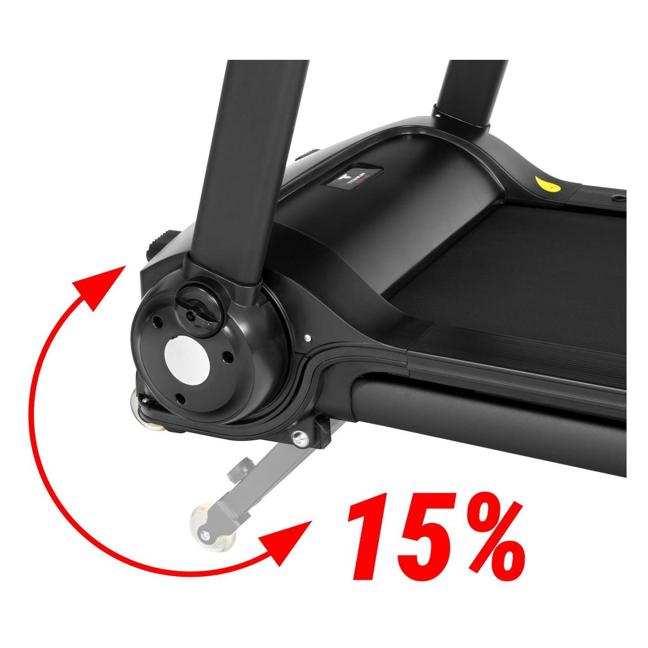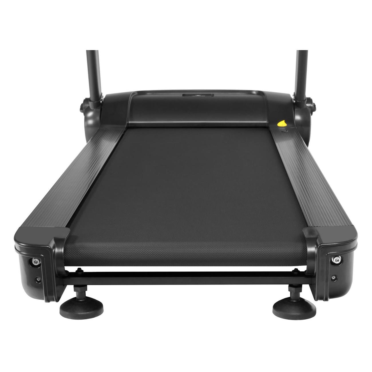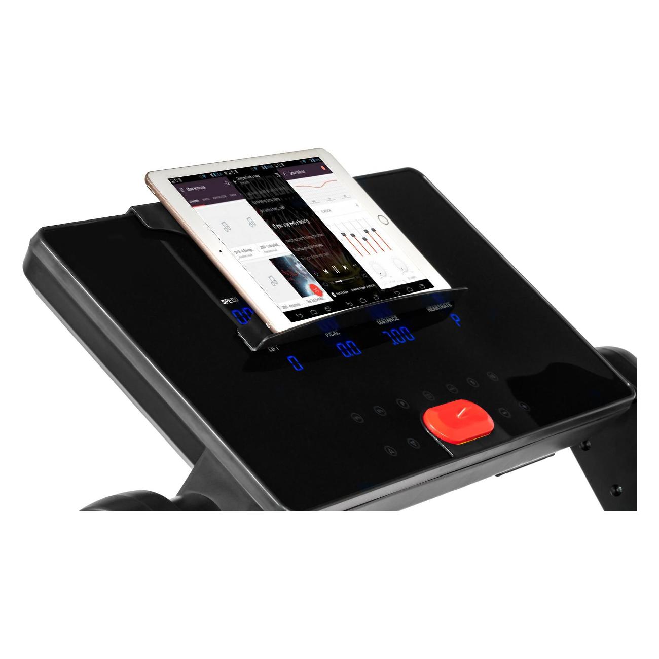 Сенсорная консоль позволяет выбрать одну из 12 автоматических программ и трех режимов для достижения определенного расхода калорий, дистанции или скорости. Заданные параметры и текущие показатели, в том числе и пульс, выводятся на экран. Дисплей дополнен подставкой для смартфона. USB-разъем дает возможность зарядить любое совместимое устройство. Транспортировочные ролики и компенсаторы неровностей упрощают эксплуатацию.