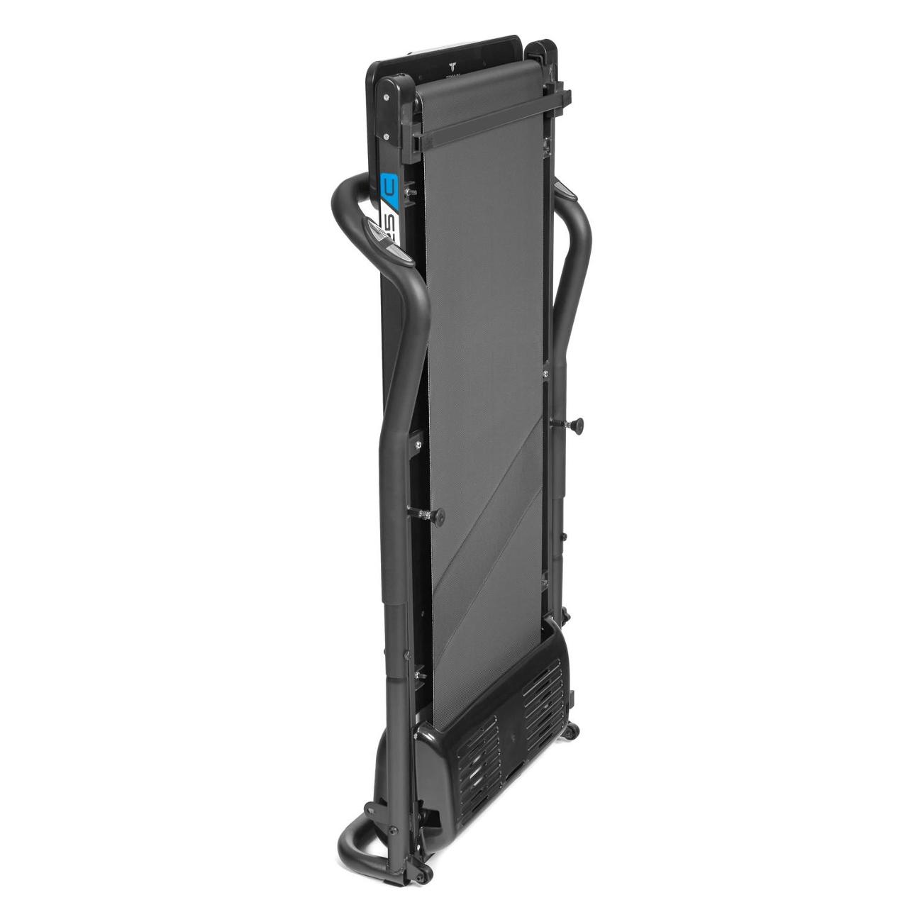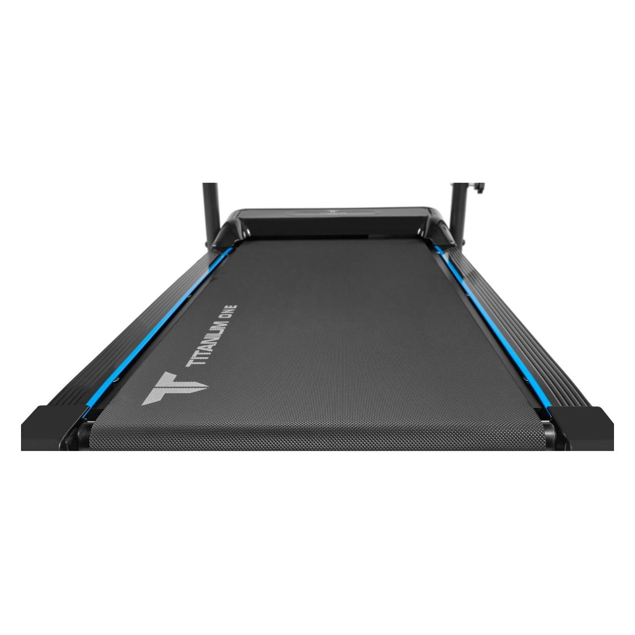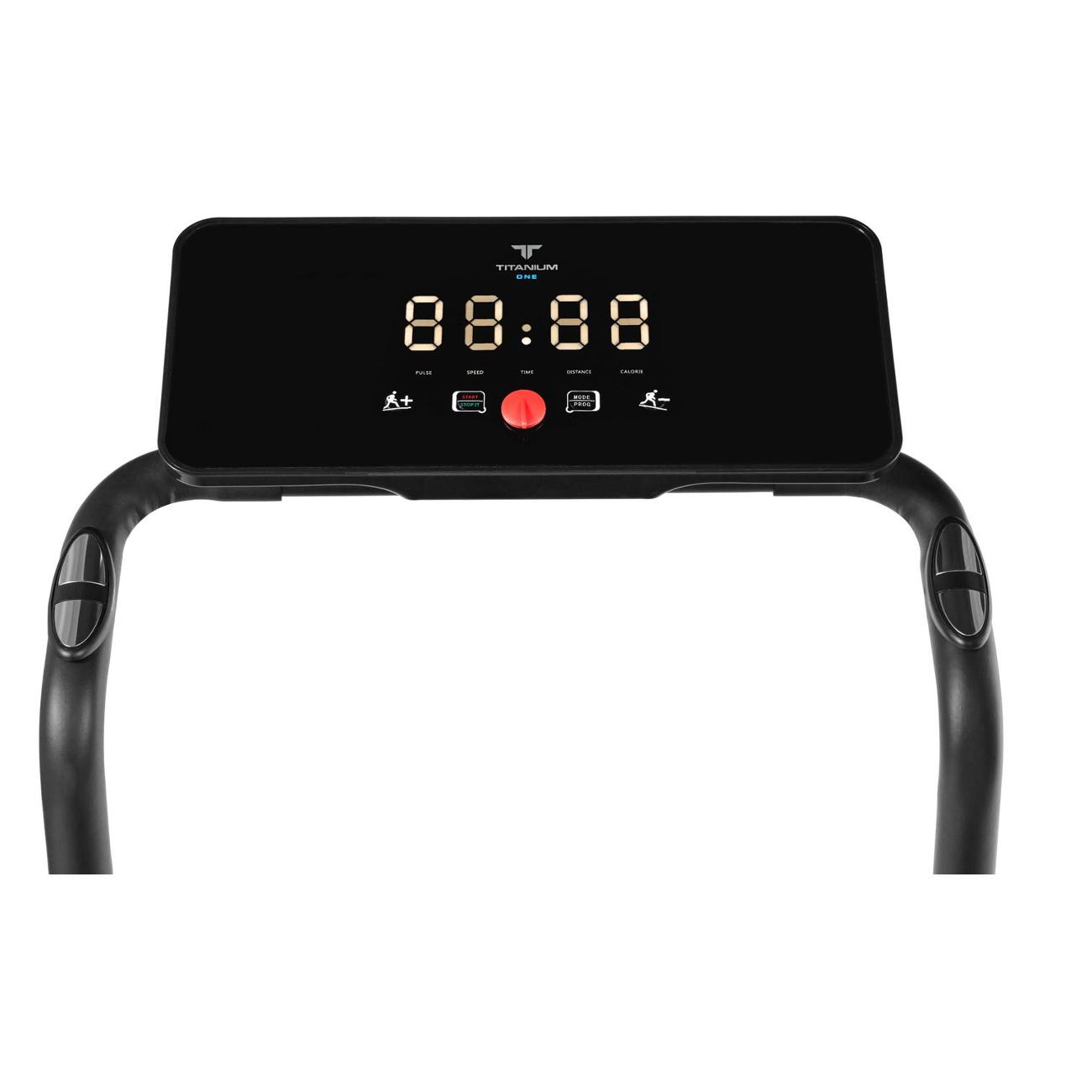 Беговая дорожка Titanium One T25 C отличается складной конструкцией и возможностью хранения в вертикальном положении. Устройство не занимает много места. Модель с габаритами 121х60х20,5 см весит 24 кг. Транспортировочные ролики упрощают перемещение. Прорезиненные ножки обеспечивают устойчивость конструкции, компенсируя неровности пола.