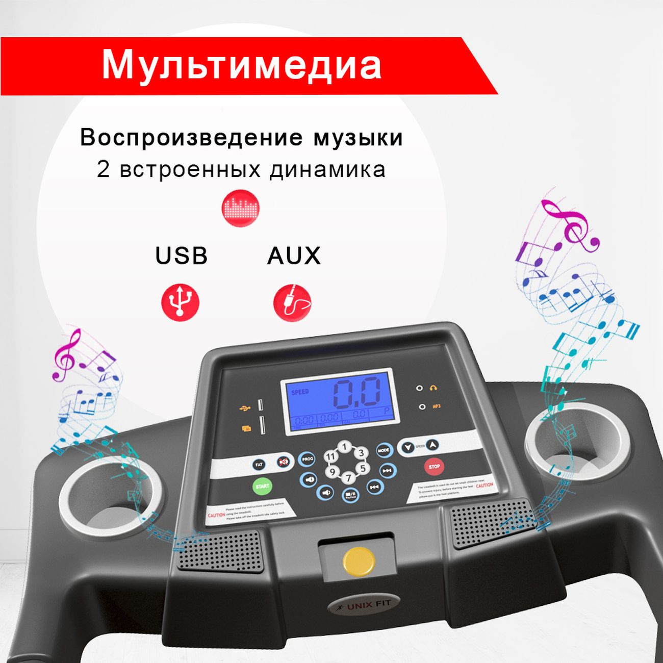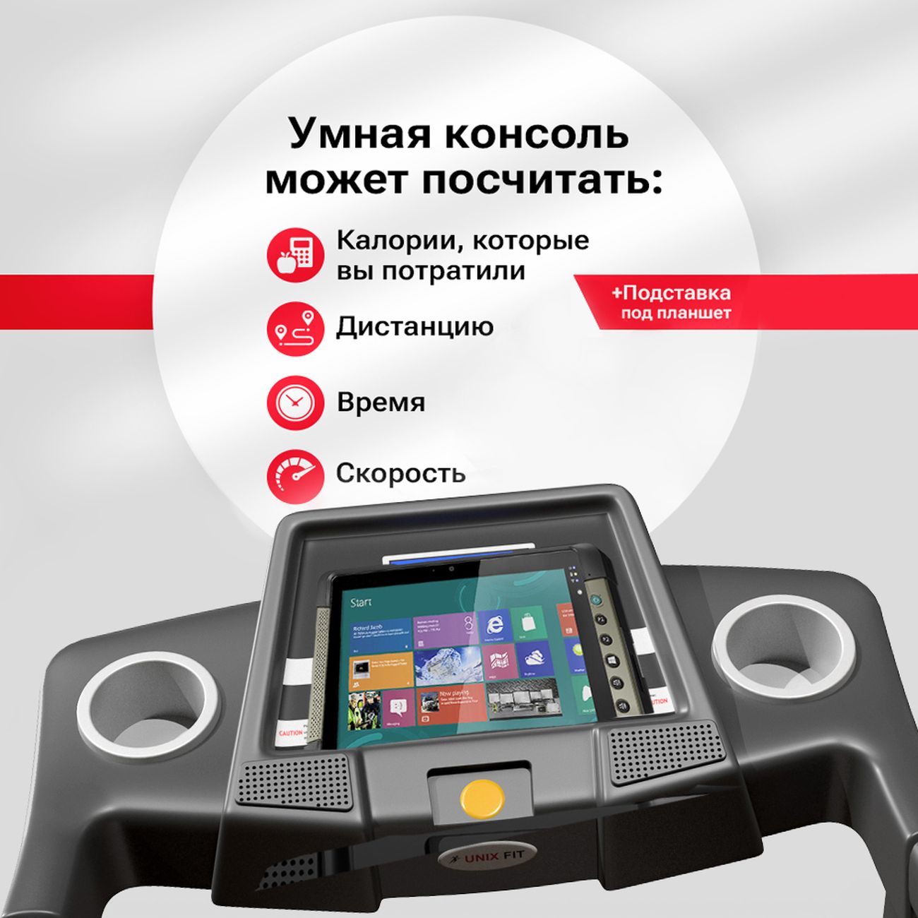 Яркий дисплей, размещенный на лицевой стороне корпуса, показывает пройденное расстояние, израсходованные калории и ваши физиологические параметры. Модель оснащается держателем под бутылки с водой. Транспортировочные ролики упрощают эксплуатацию.