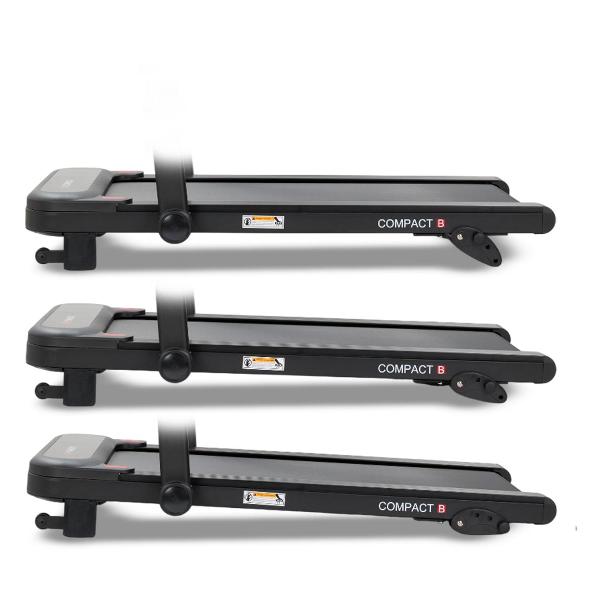 Беговая дорожка YAMOTA COMPACT B предназначена для использования в домашних условиях. Обеспечивает эффективную тренировку при минимальной нагрузке на опорно-двигательный аппарат. Рабочая зона — 110×43 см. Регулировка угла наклона — ручная, в пределах 0–4 градусов. Амортизационная система состоит из 8 эластомеров, обеспечивающих мягкость хода. Консоль отображает параметры тренировки: скорость, время, дистанция, калории. Мощность мотора — 1.5 л.с., пиковая — 2.0 л.с. Подходит для пользователей массой до 100 кг. Устройство компактно складывается, что удобно для хранения. Вес — 35 кг. Гарантия — 1 год. Производство — Китай.