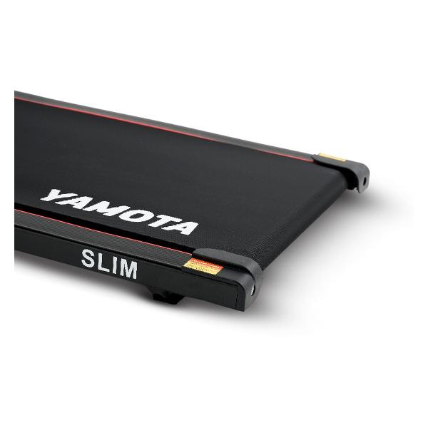 Беговая дорожка Yamota Slim предназначена для домашнего использования. Рабочая зона — 102×38 см. Моторная мощность — 1.25 л.с., пиковая — 1.75 л.с. Диапазон скоростей — от 0.8 до 8 км/ч. Устройство не оснащено регулировкой угла наклона. Консоль с LCD-дисплеем отображает время тренировки, скорость и калории. Уровень шума снижен благодаря технологии Maxquiet. Вес — 17 кг, в сложенном виде — 125.4×54×12.3 см. Удобная компактность позволяет хранить изделие в небольшом пространстве. Гарантия — 1 год. Производство — Китай.