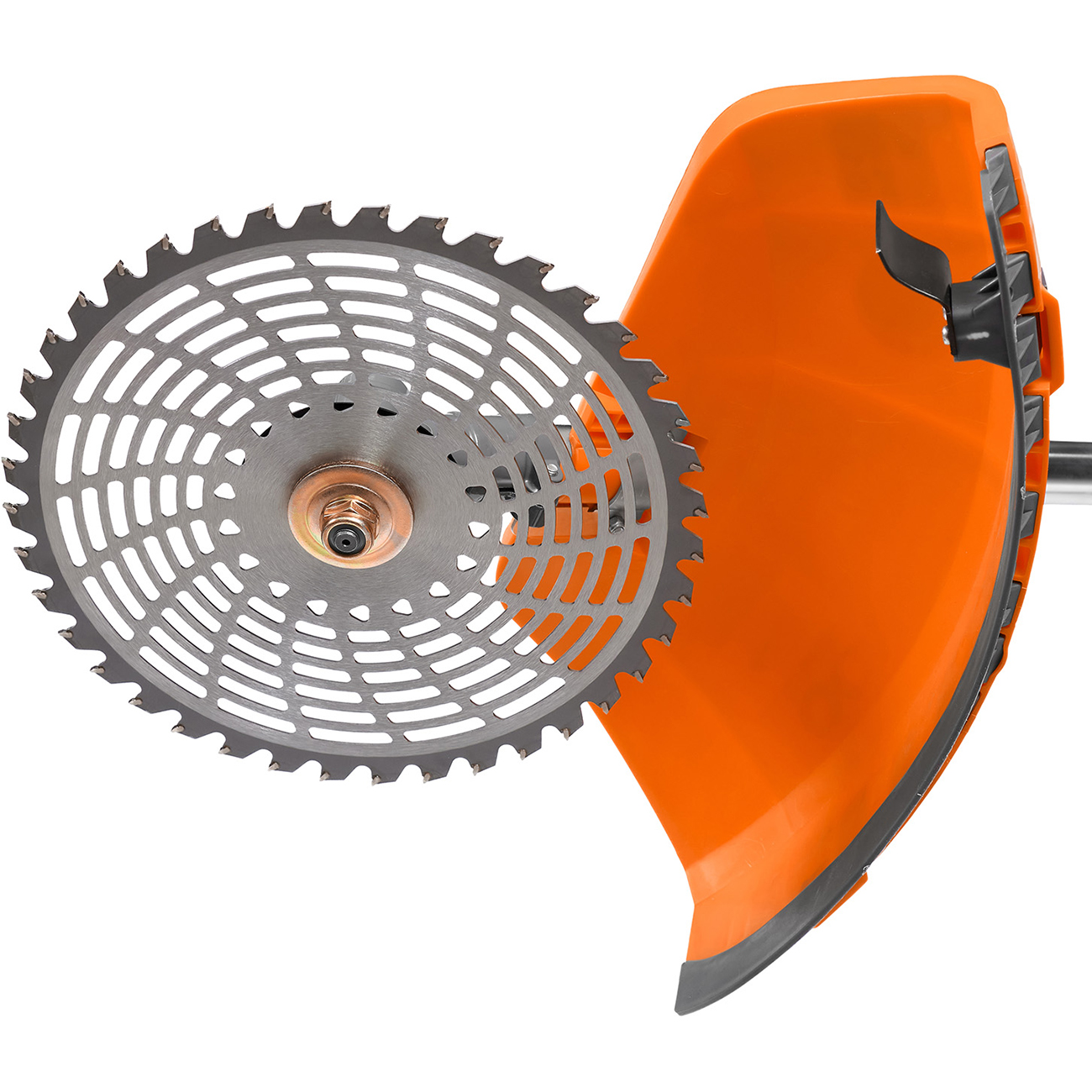 Штанга разъемного типа упрощает процесс перевозки и хранения устройства. Применена технология гашения шума и снижения уровня вибрации. Специальный защитный кожух выполнен из твердого пластика, устойчивого к внешним повреждениям. В холостом ходе триммер может совершать до 6500 об/мин. Вес составляет 8,4 кг.
