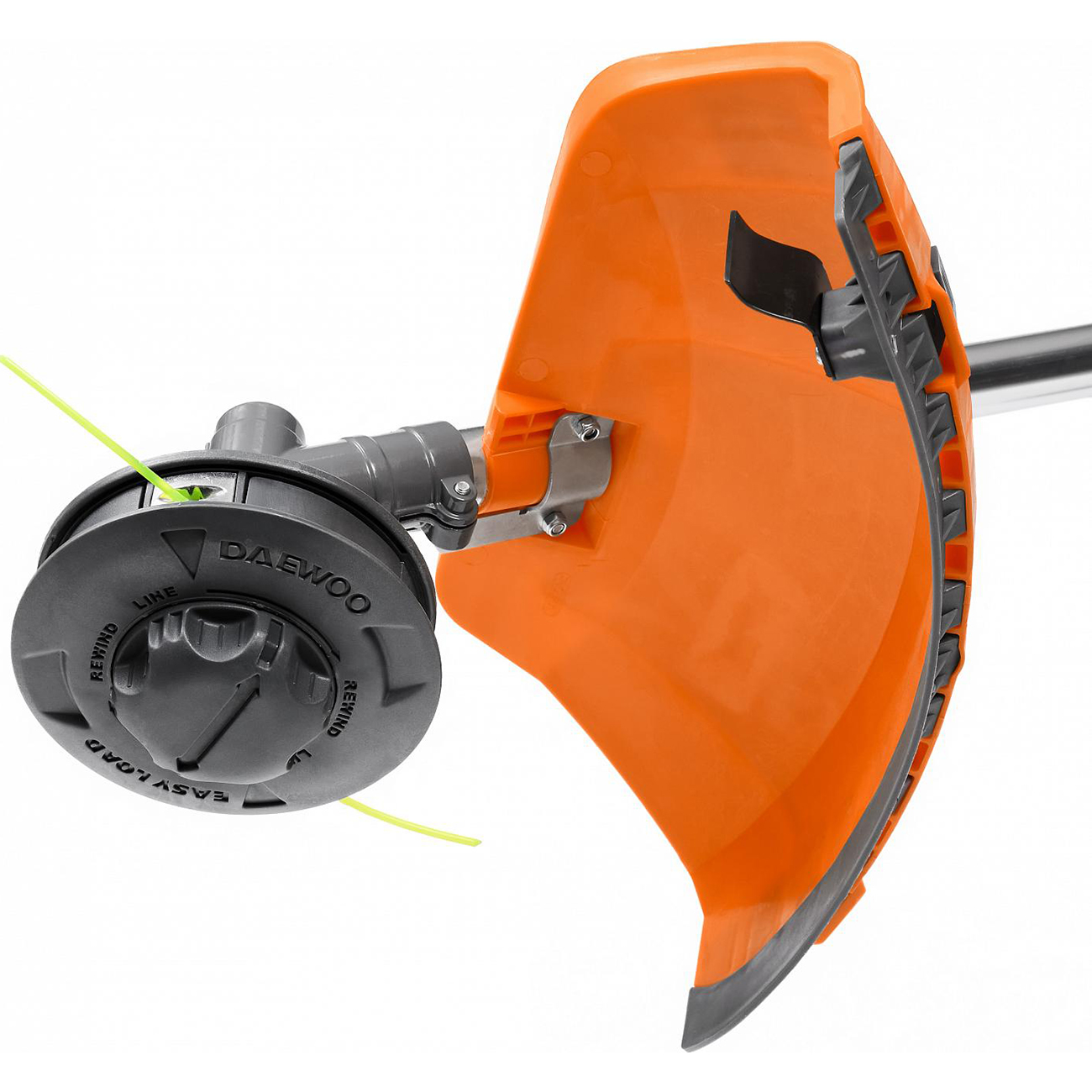 Бензиновый триммер Daewoo DABC 4ST оснащен двигателем четырехтактного типа, мощность которого равна 1,5 л.с. Объем бака для топлива составляет 0,65 л. В качестве режущего элемента используется диск с 40 зубьями, сделанный из прочной стали, не подверженной появлению коррозии. Также в набор входят катушка с леской и плечевой ремень.