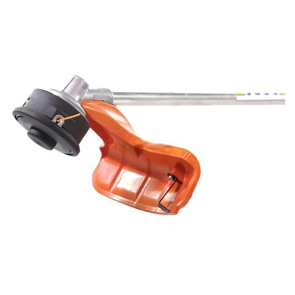 В этой модели можно использовать нож и леску диаметром 2,4 мм. Корпус прибора сделан из пластика, ручка выполнена в форме буквы U (велосипедная). Плечевой ремень облегчает переноску триммера во время работы. Габариты конструкции — 28х28х100,5 см, вес — 5 кг.