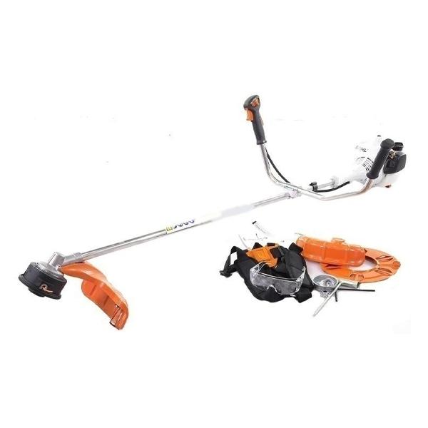 Бензиновый триммер Stihl FS 55 оборудован двухтактным двигателем объемом 27,2 см³. Мотор расположен сверху, снабжен функцией легкого запуска. Устройство предназначено для скашивания травы на участке площадью до 1000 м². Ширина среза достигает 55 см.