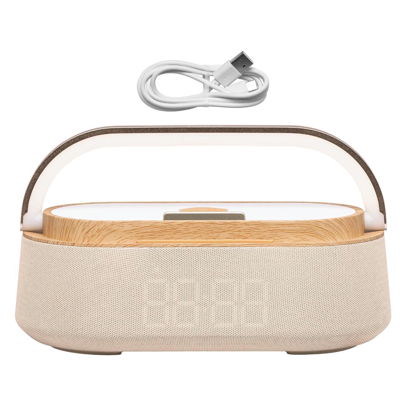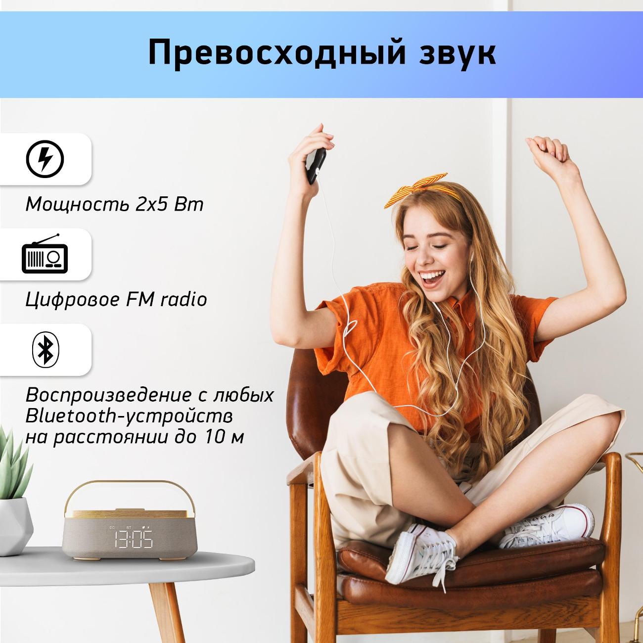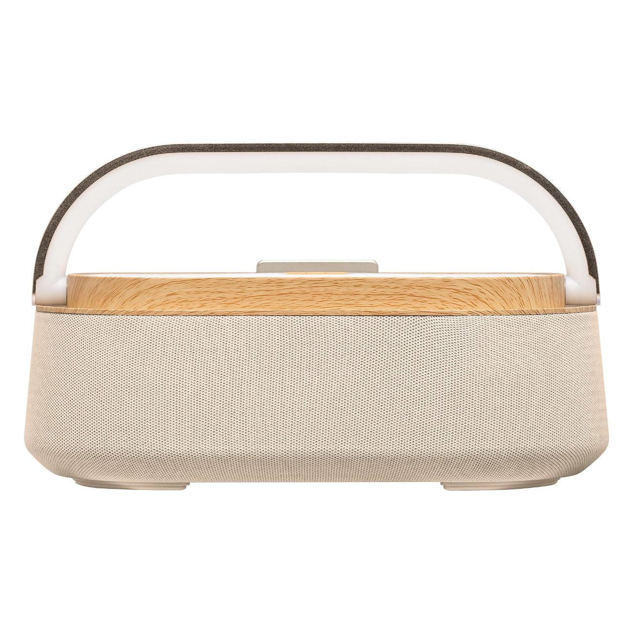 Очень красивая колонка. Покупала ее для своей студии маникюра. Чтобы девочки в тишине не сидели. Хотелось что-то, что будет хорошо в интерьере смотреться, конечно же. Поэтому на внешний вид сильно внимание обращала. Понравилась деревянная вставка, как раз сочетается со столами идеально. Да и вообще бежевый цвет красивый. Сделана очень качественно, что и не скажешь, что так мало стоит.