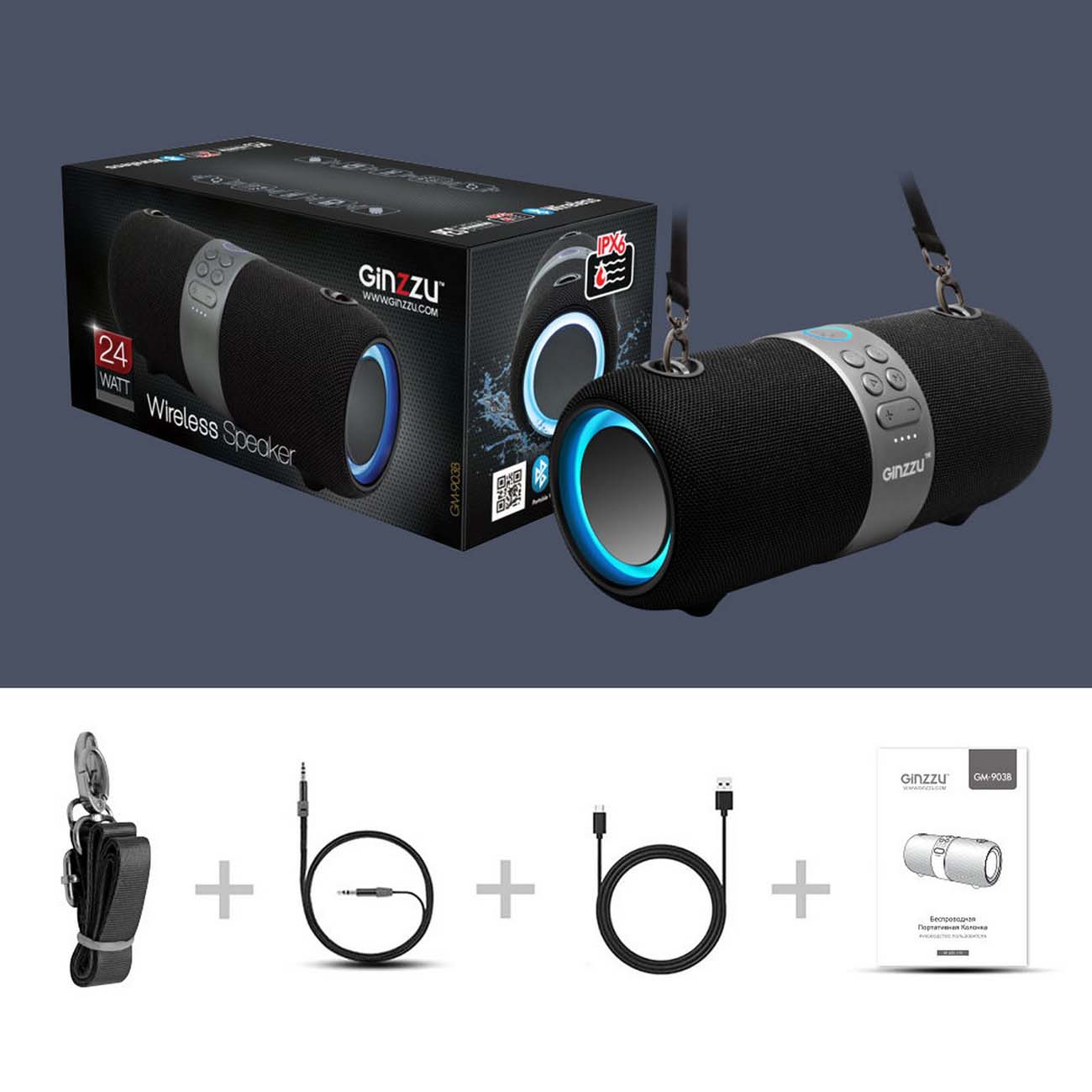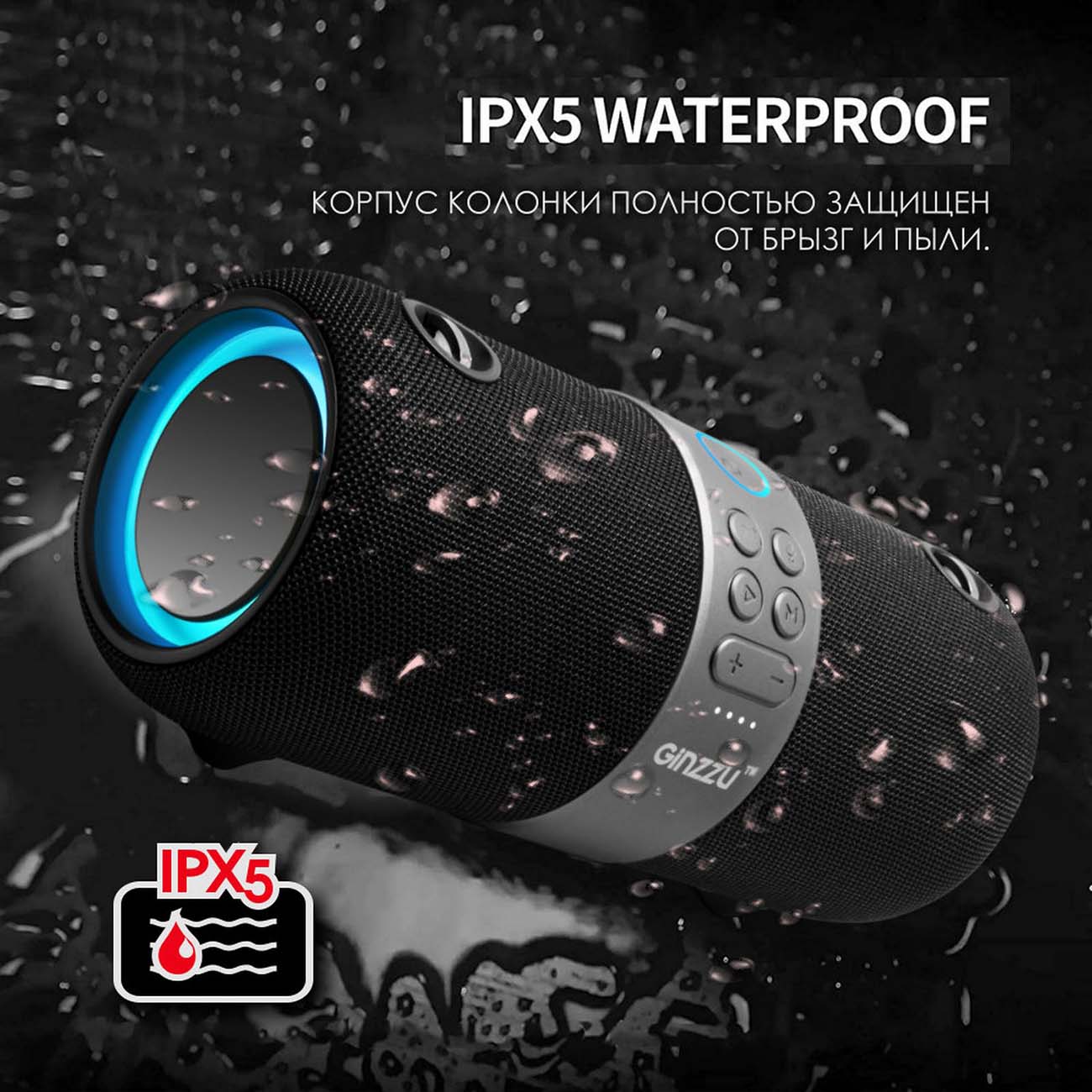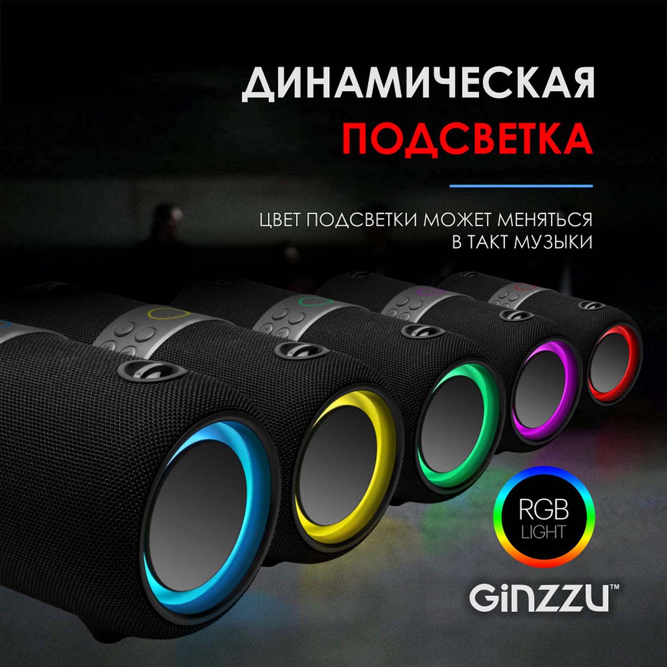 Беспроводная акустика Ginzzu выходной мощностью 24 Вт поддерживает режимы Handsfree, Siri Voice Control, Google Assistant, что дает возможность управлять ей голосом. Опция TWS позволяет подключать беспроводные наушники.